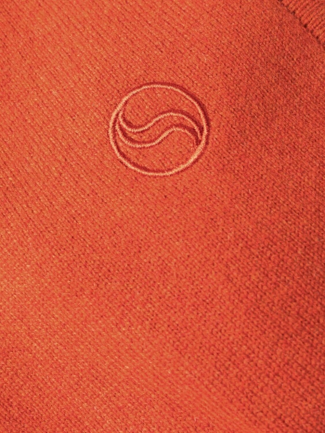 Оранжевый, смесь шерсти и кашемира, вышитый узор, кулиска на талии, подол в рубчик и укороченная длина. .