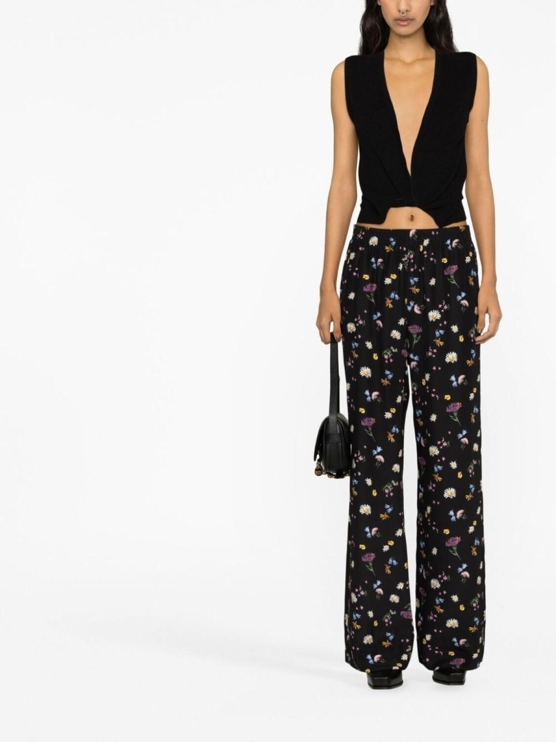 Stella McCartney шелковые брюки с цветочным принтом, черный