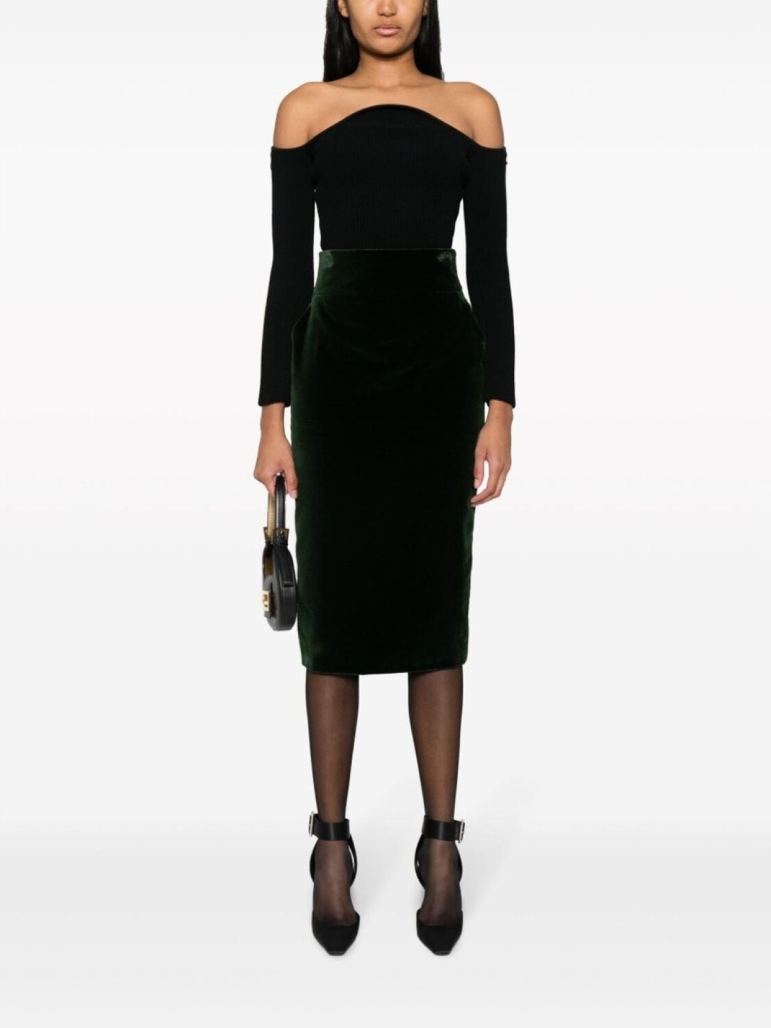 Alexandre Vauthier бархатная юбка миди, зеленый