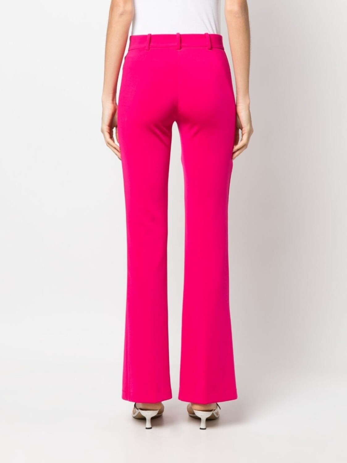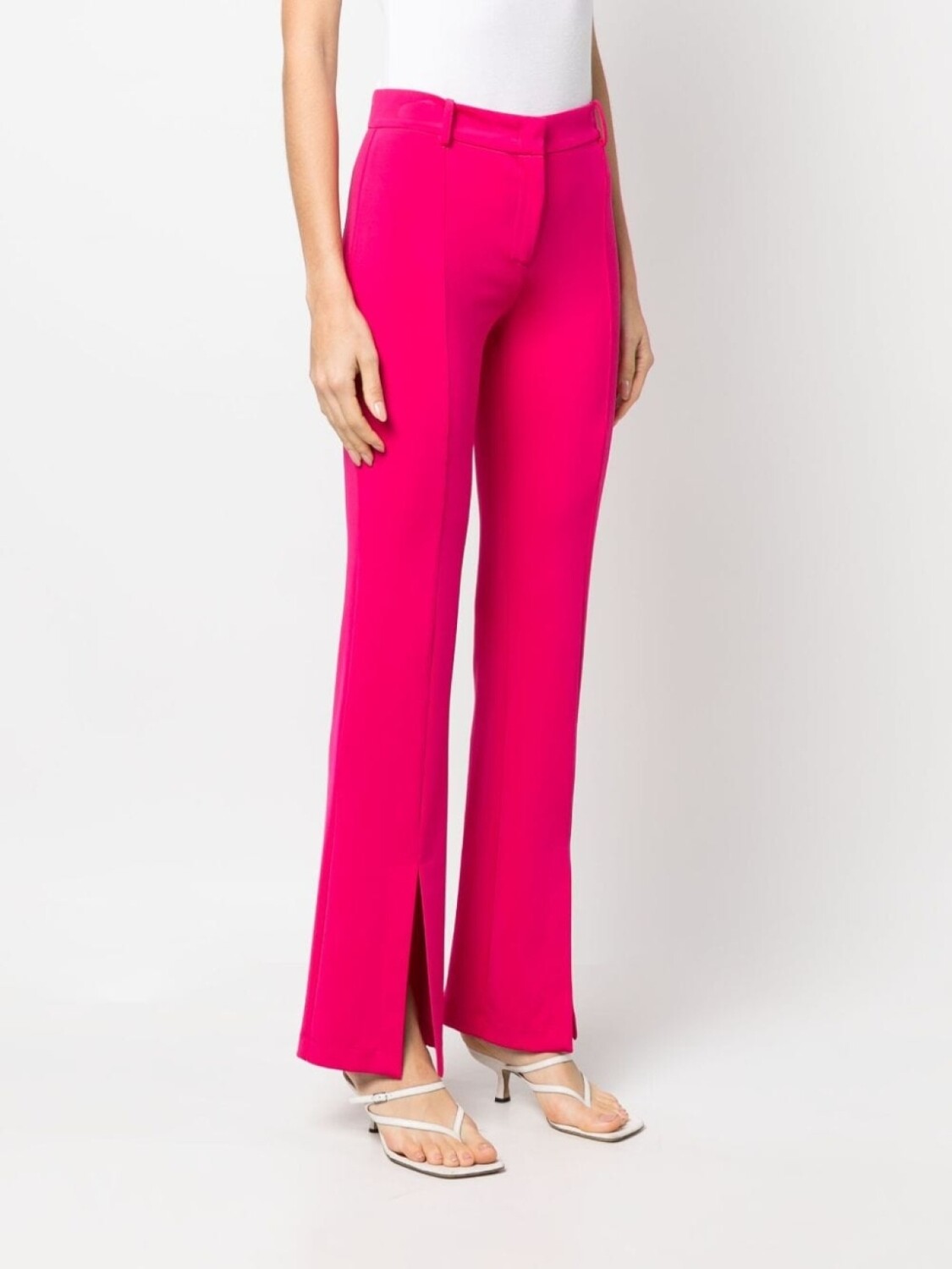 Фуксия, эластичный материал, вертикальный шов, петли для ремня, потайная застежка спереди и разрез спереди.