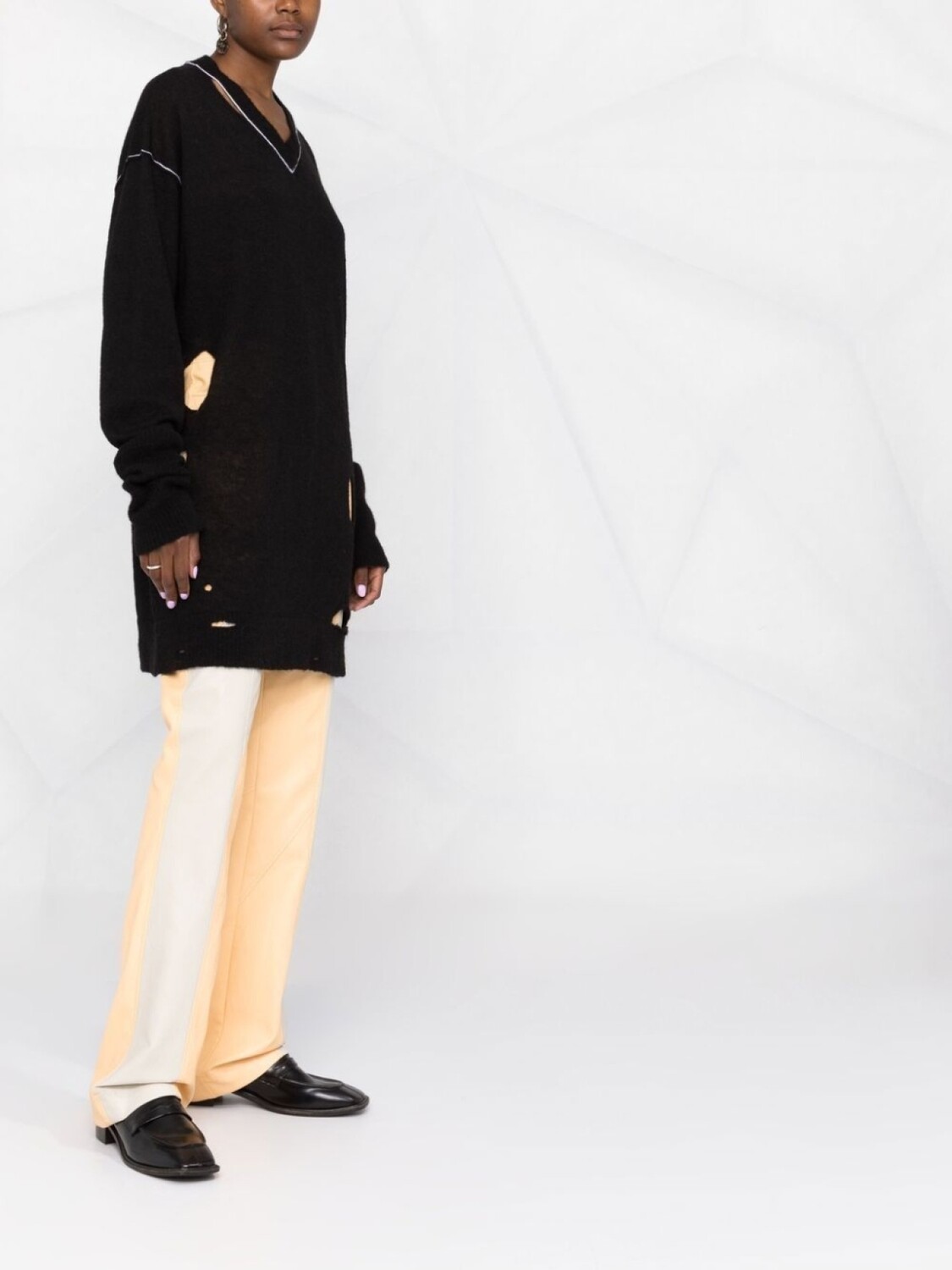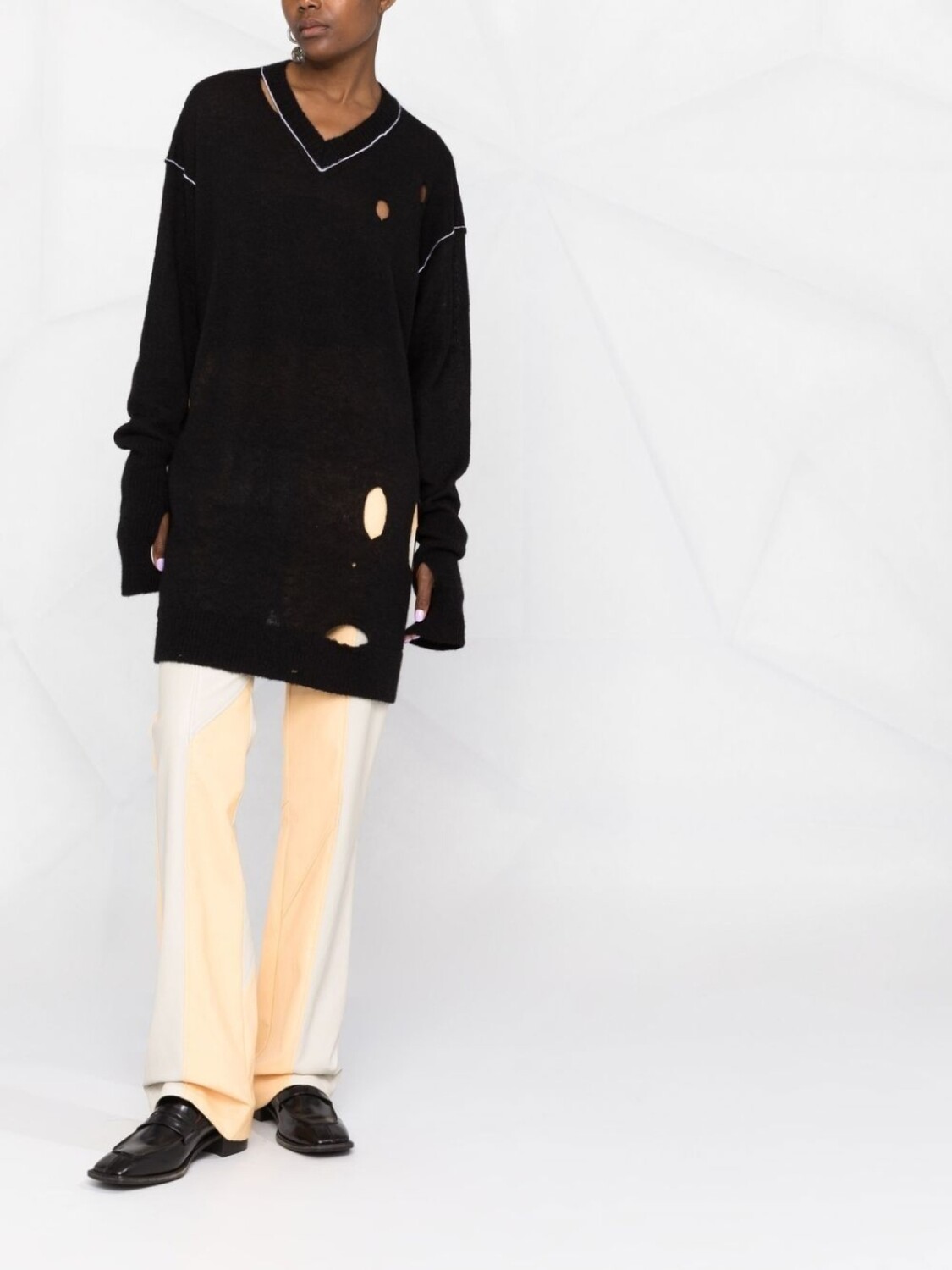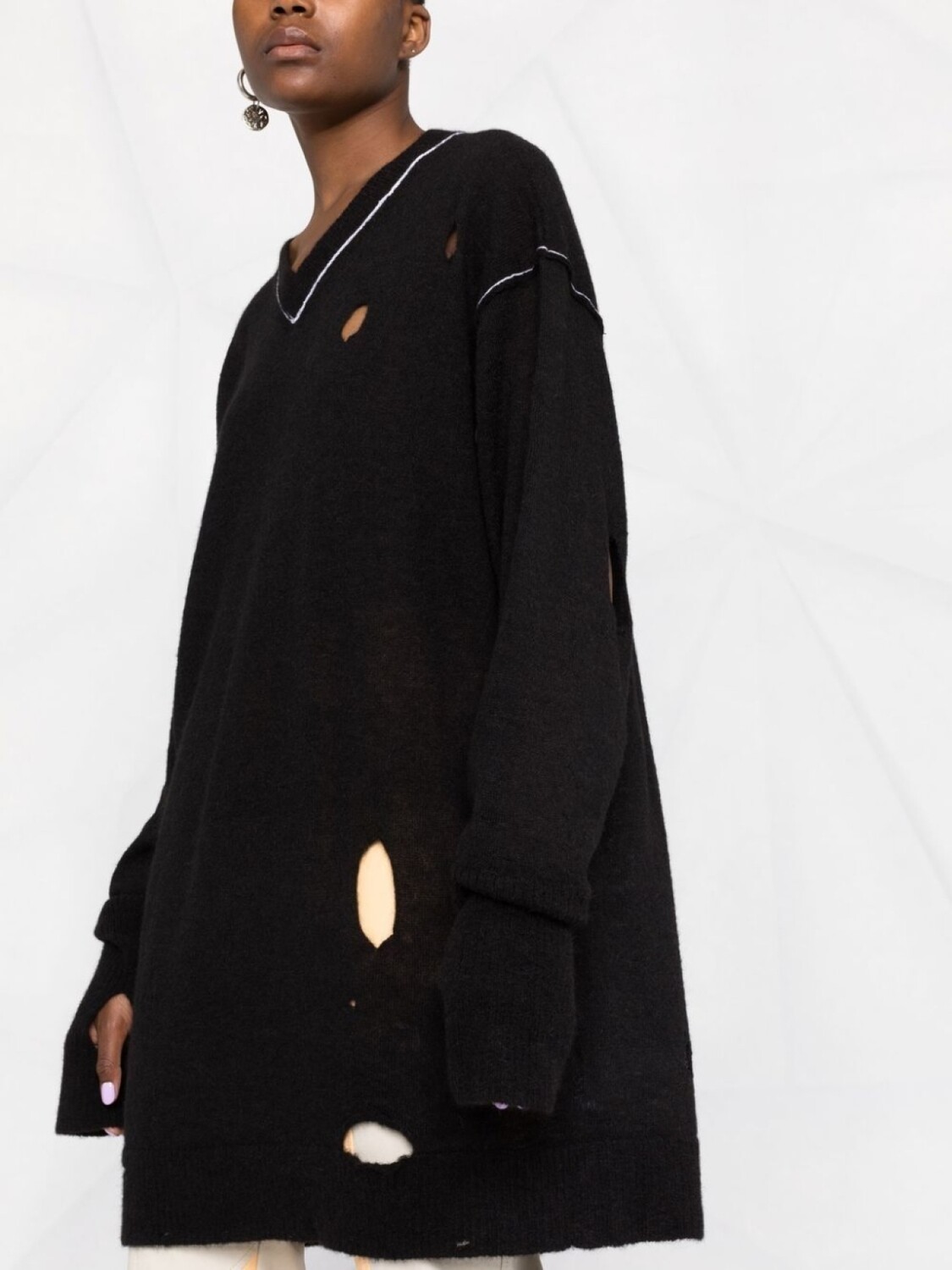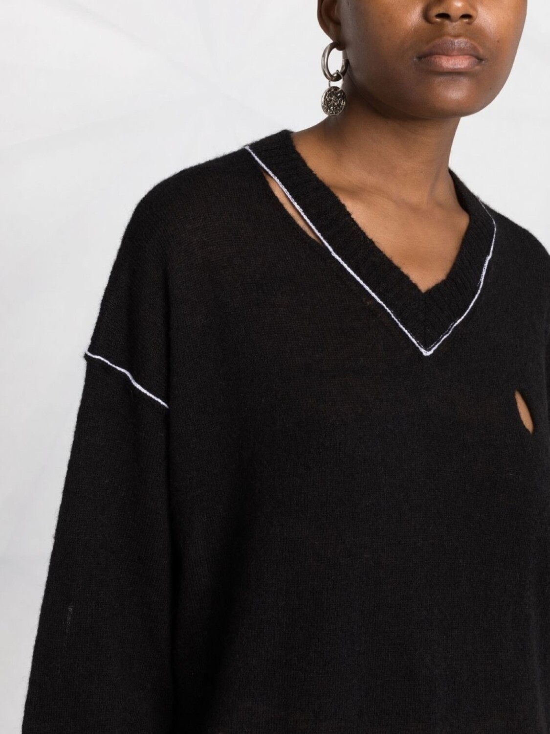 MM6 Maison Margiela джемпер с V-образным вырезом и эффектом потертости, черный