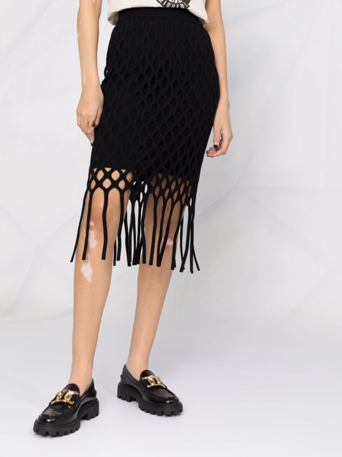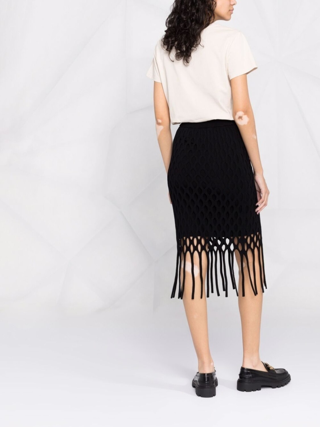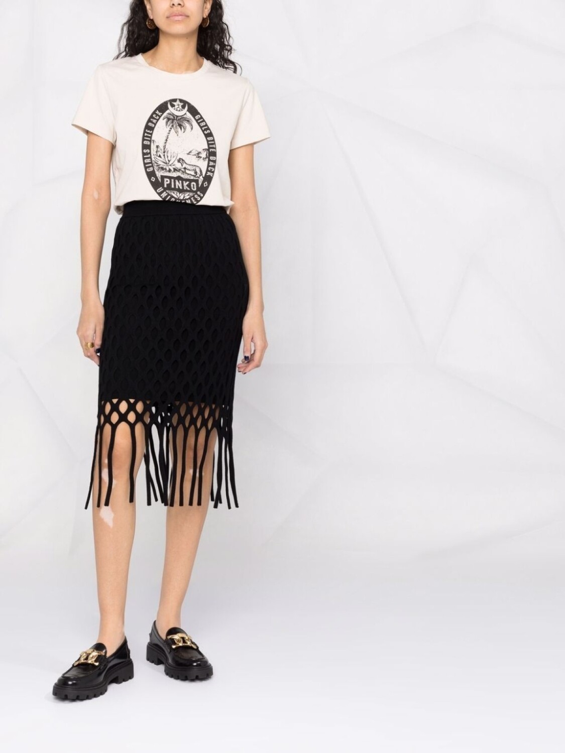 PINKO юбка в технике макраме с бахромой, черный 41 361₽