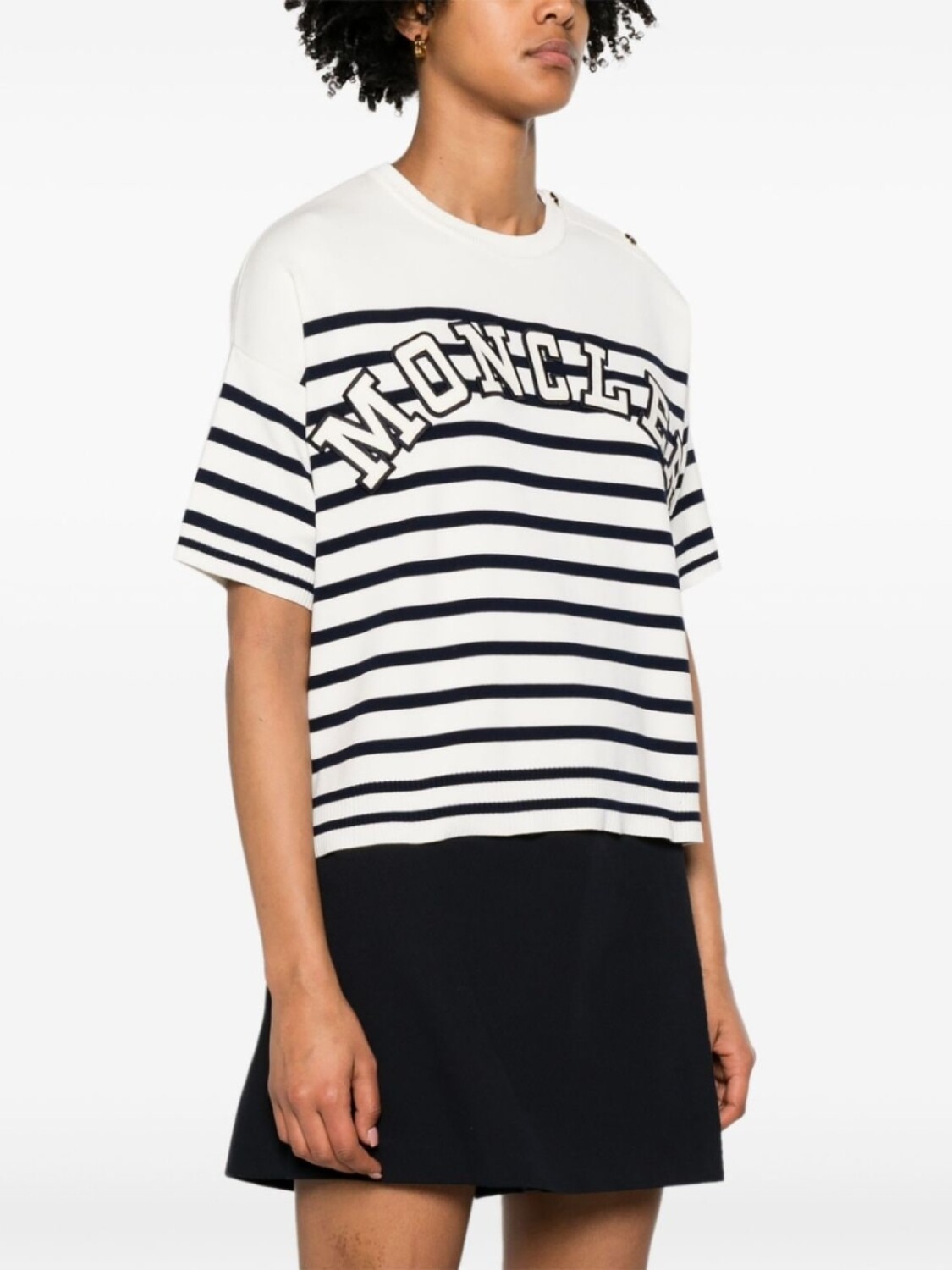 Moncler полосатый топ с нашивкой-логотипом, синий