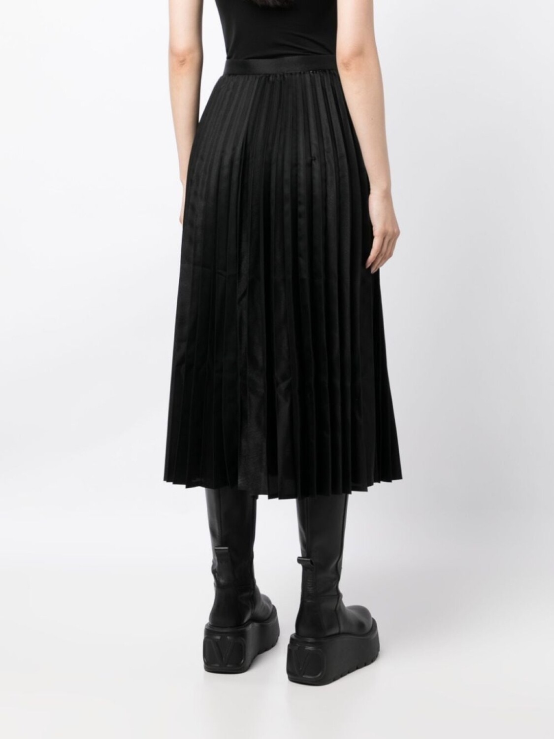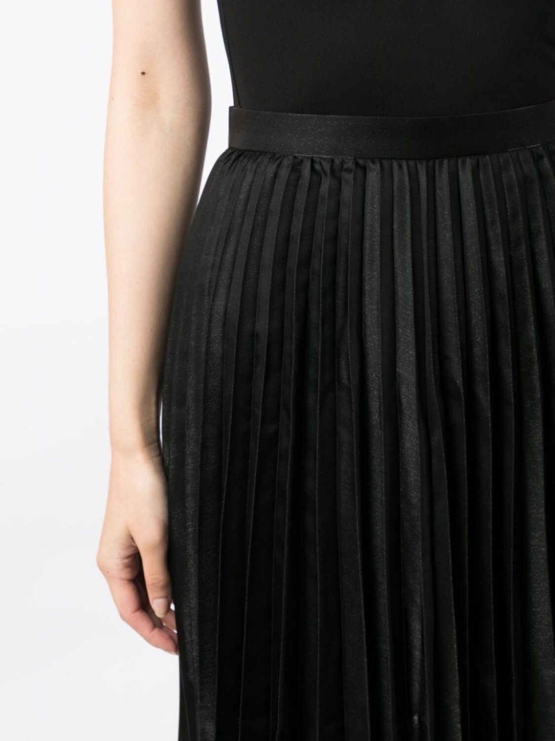 Черный, плиссированная модель, эластичный пояс, расклешенный подол и длина миди.