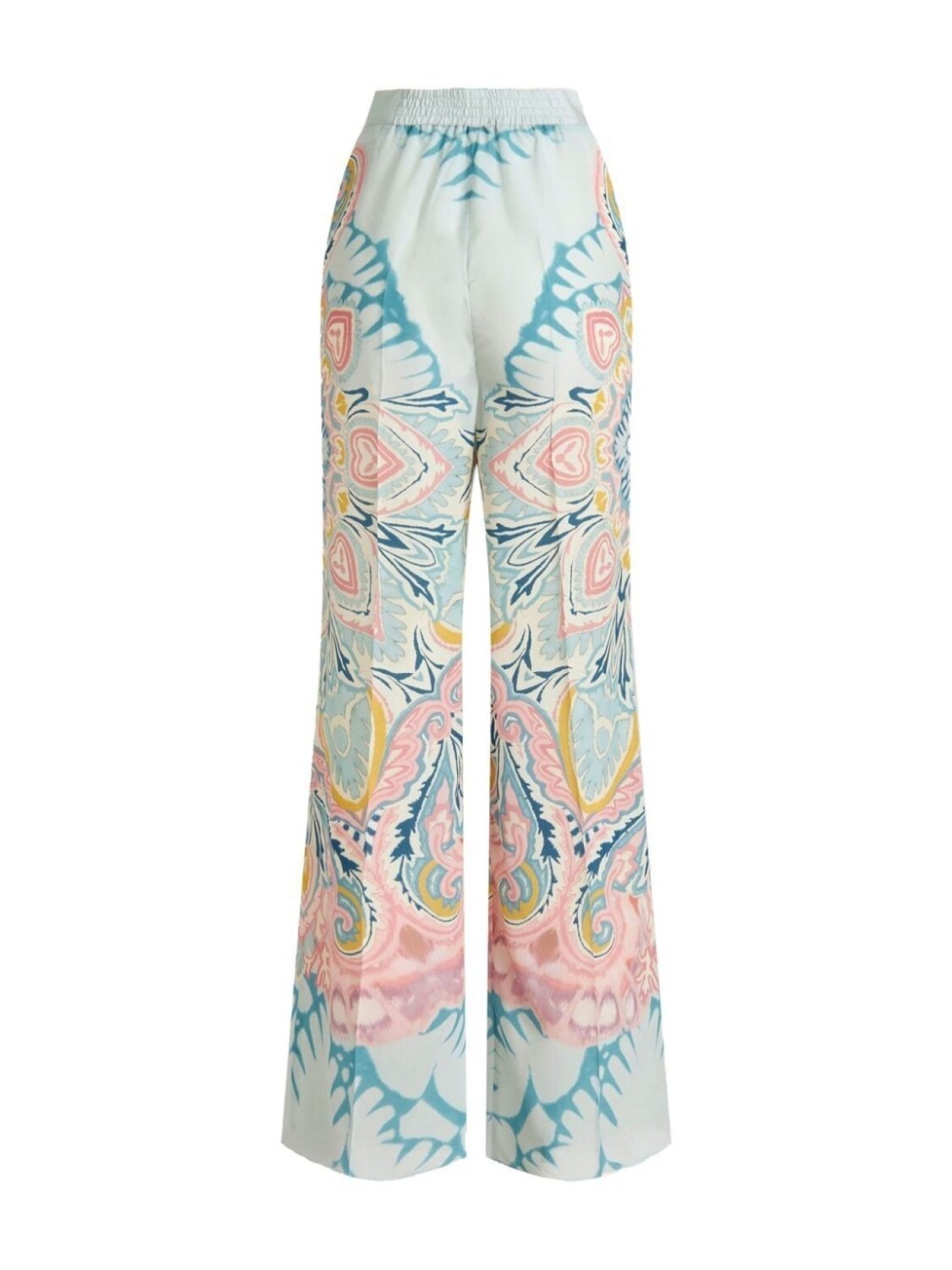 Разноцветный, шелк, сатиновая фактура, принт пейсли, завышенная талия, эластичный пояс и широкий крой.