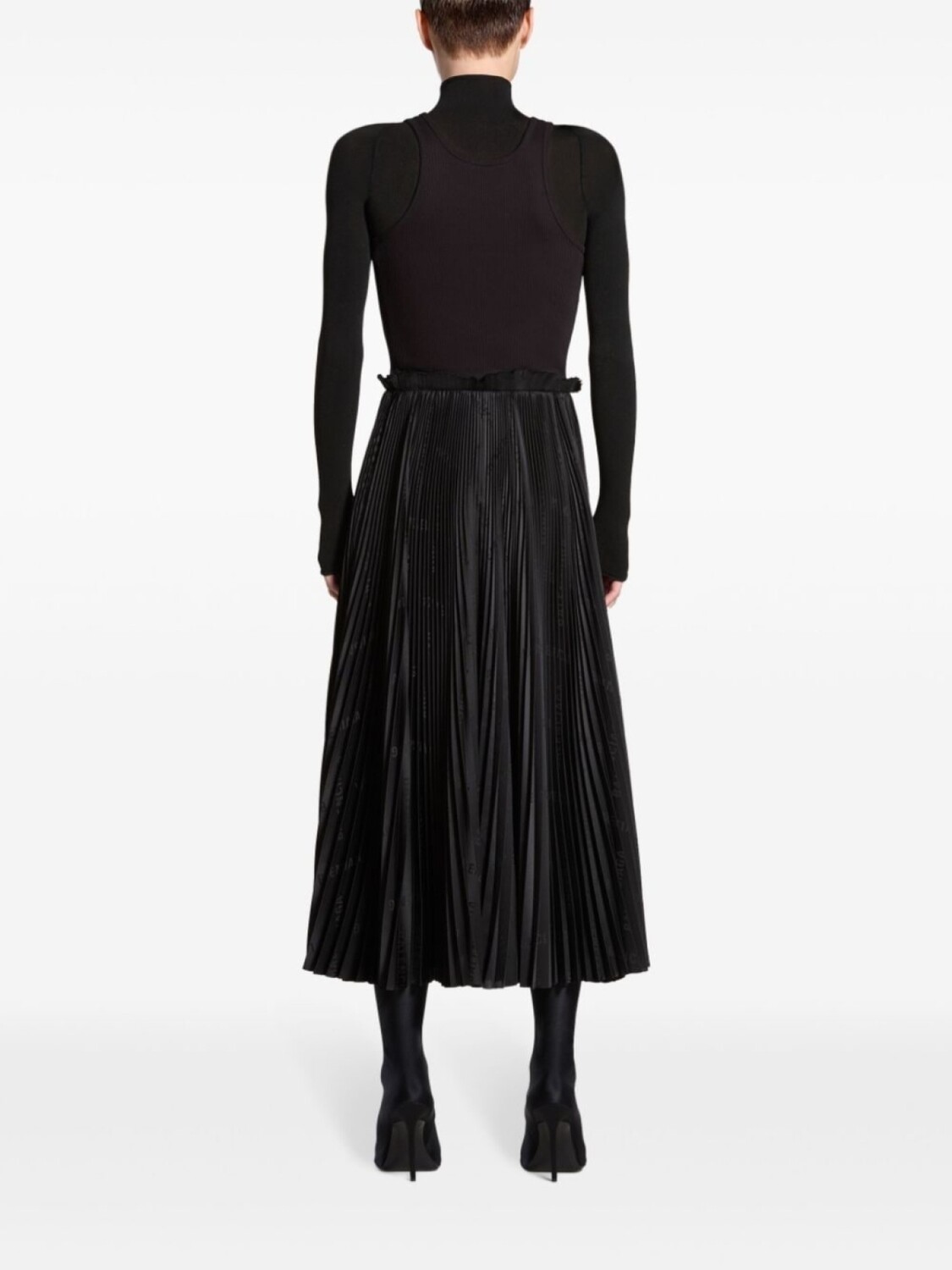 Balenciaga плиссированное платье миди с U-образным вырезом, черный 146 043₽