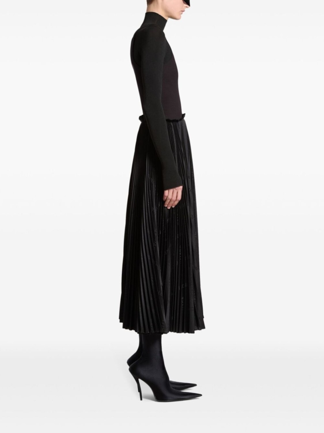 Balenciaga плиссированное платье миди с U-образным вырезом, черный
