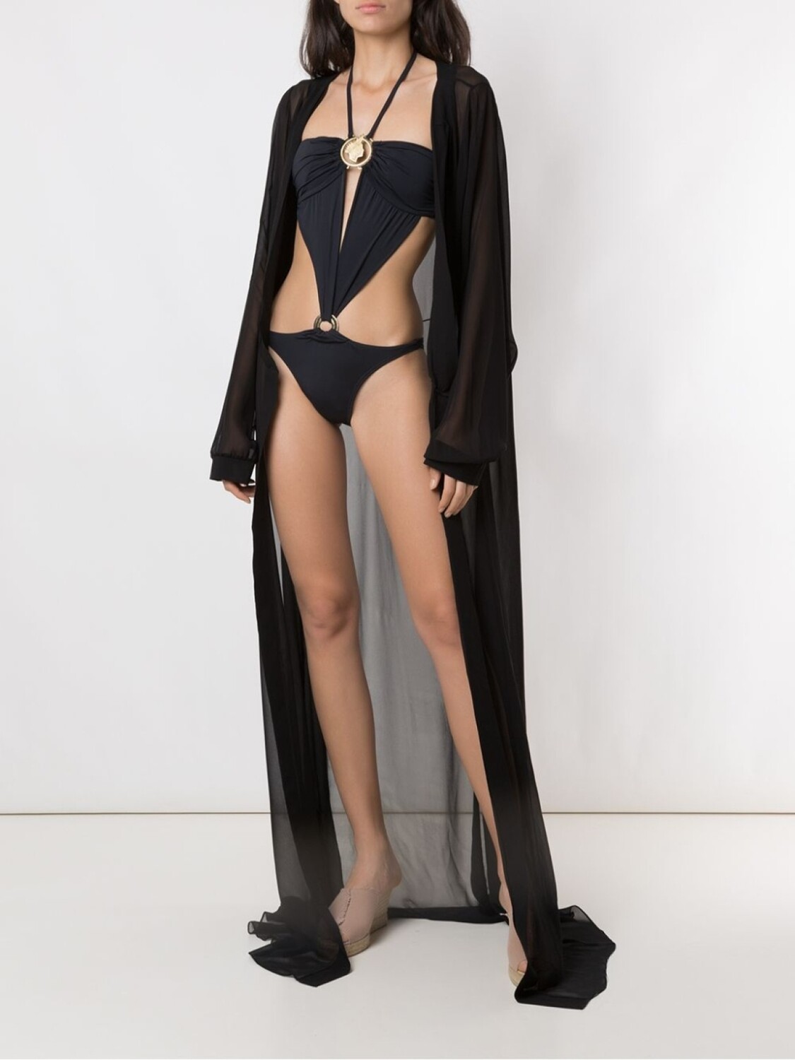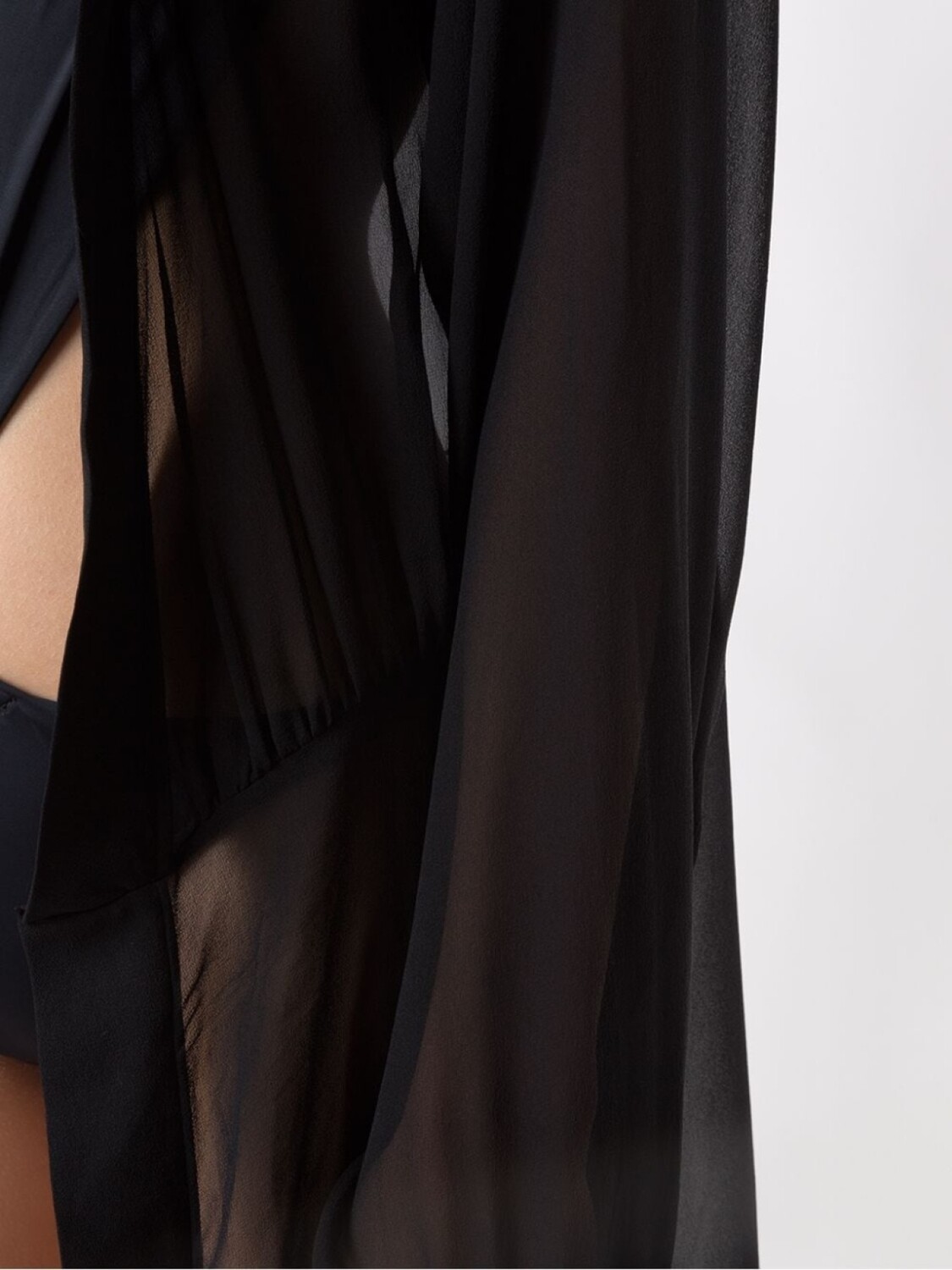 Прозрачная накидка от Amir Slama. Присборенные детали, длинные рукава, прозрачная деталь, удлиненная модель и прямой крой. Цвет: черный.