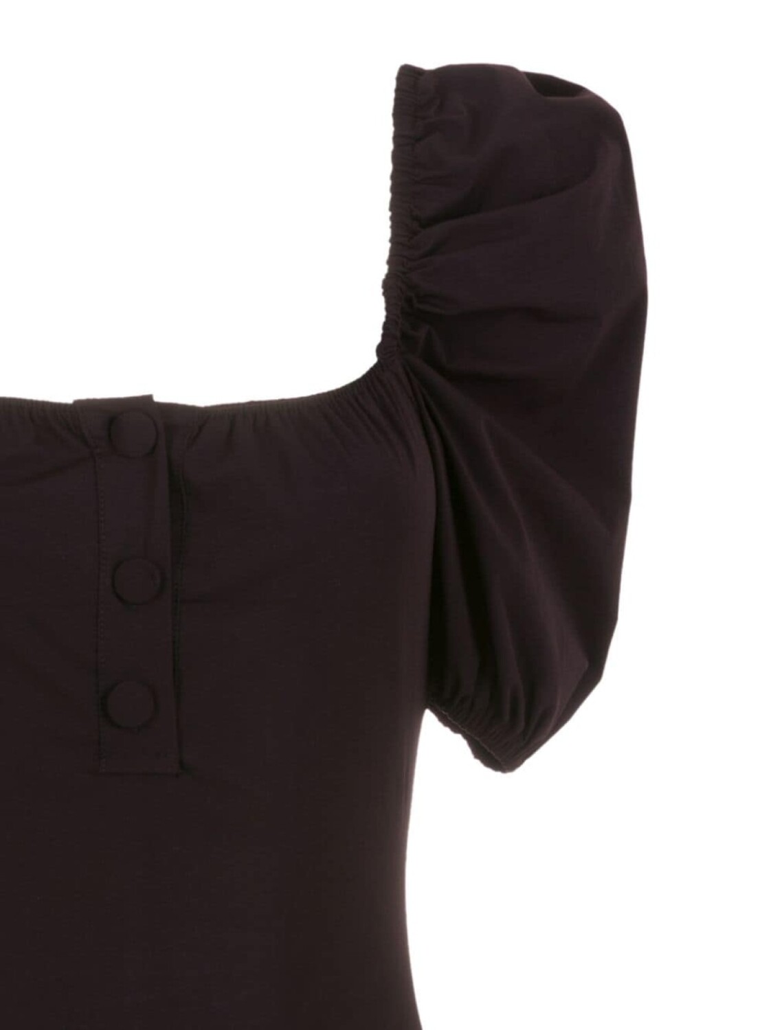 Квадратный вырез, короткие объемные рукава и эластичная модель. Цвет: черный.