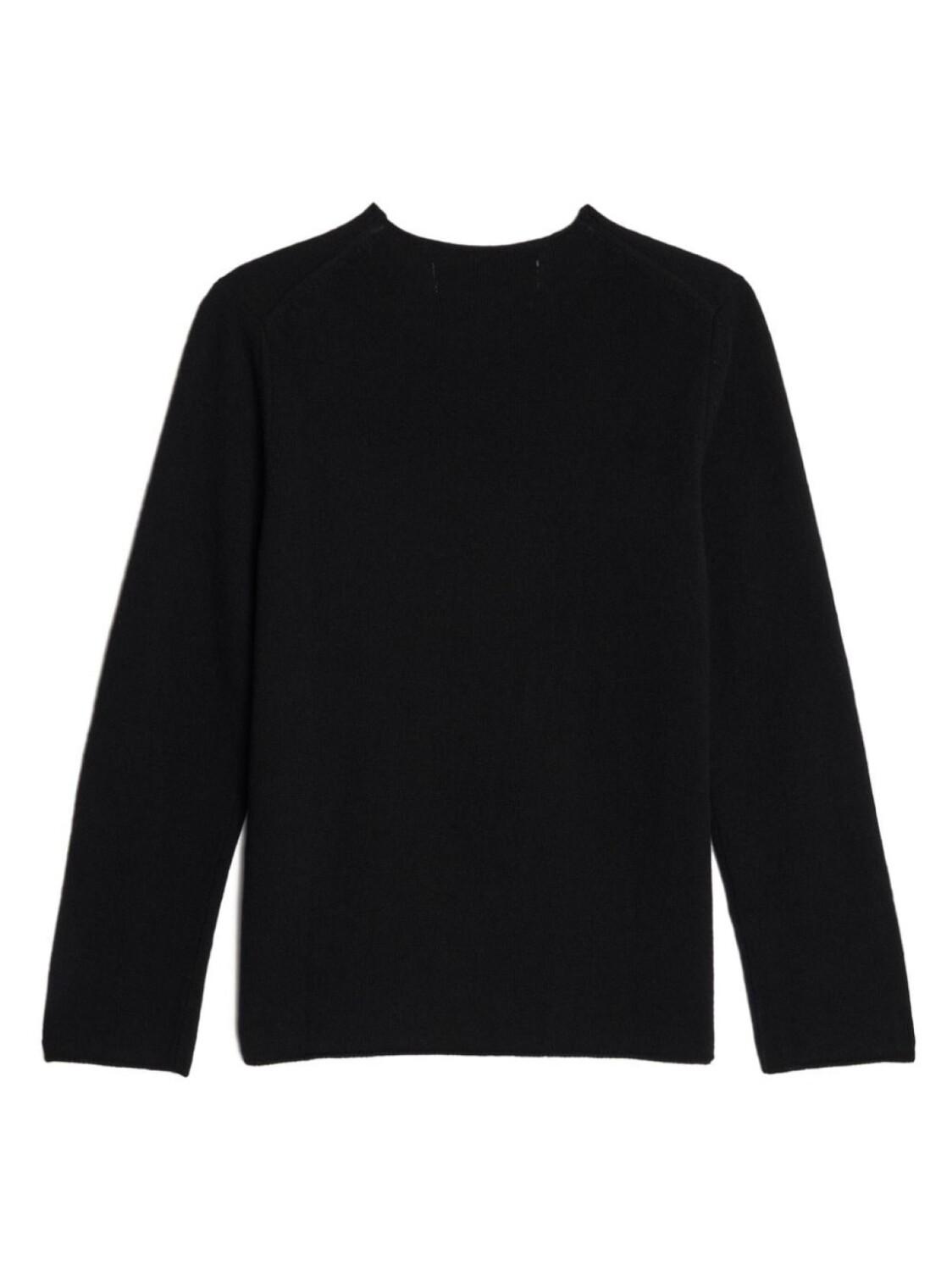 Черный, хлопок, тонкая вязка, нашивка с логотипом на груди, круглый вырез, длинные рукава и прямой подол. Это унисекс-модель. Обратите внимание, что для нее используется мужская размерная сетка.