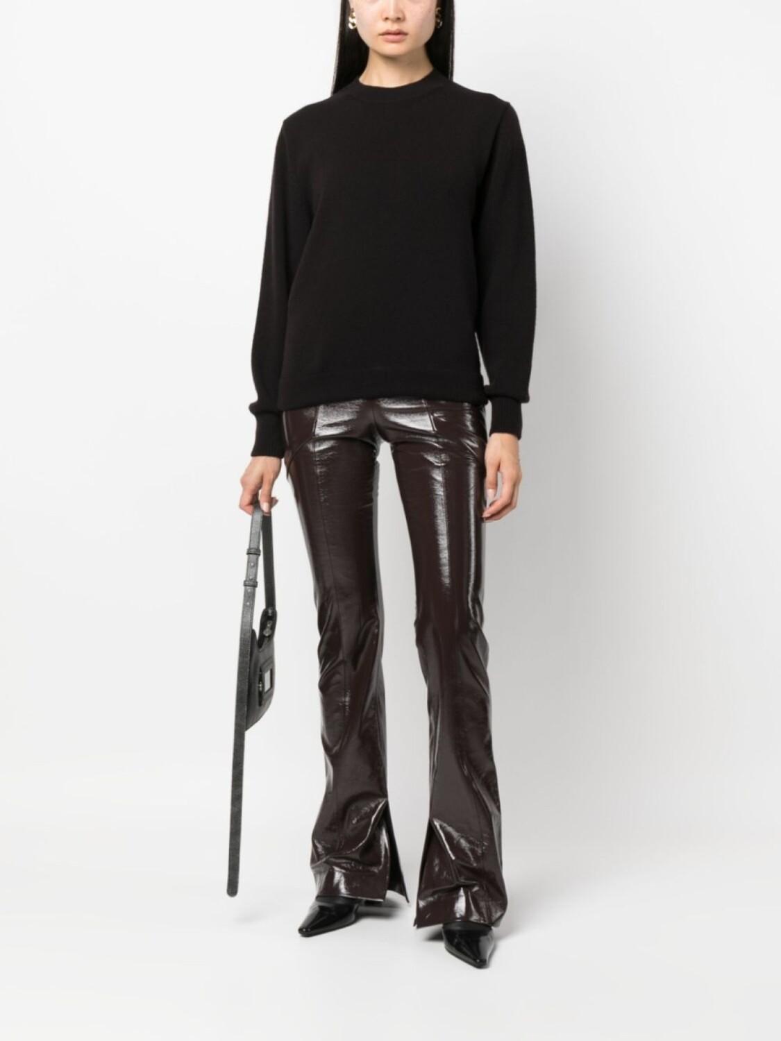 Черный, смесь шерсти и кашемира, эластичный материал, трикотажный материал, круглый вырез, длинные рукава и прямой подол.