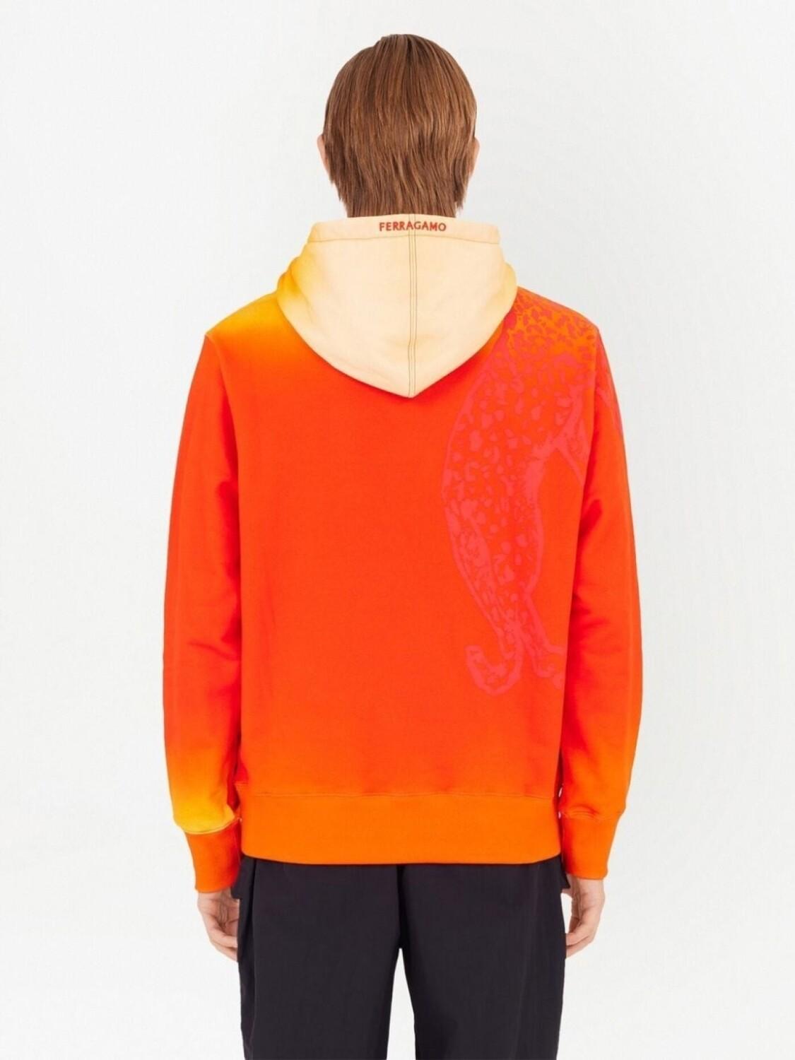 Морковный, хлопок, флисовый материал, абстрактный принт, градиентный эффект, затягивающийся на шнурок капюшон, длинные рукава, рукава с узкими манжетами и прямой подол.