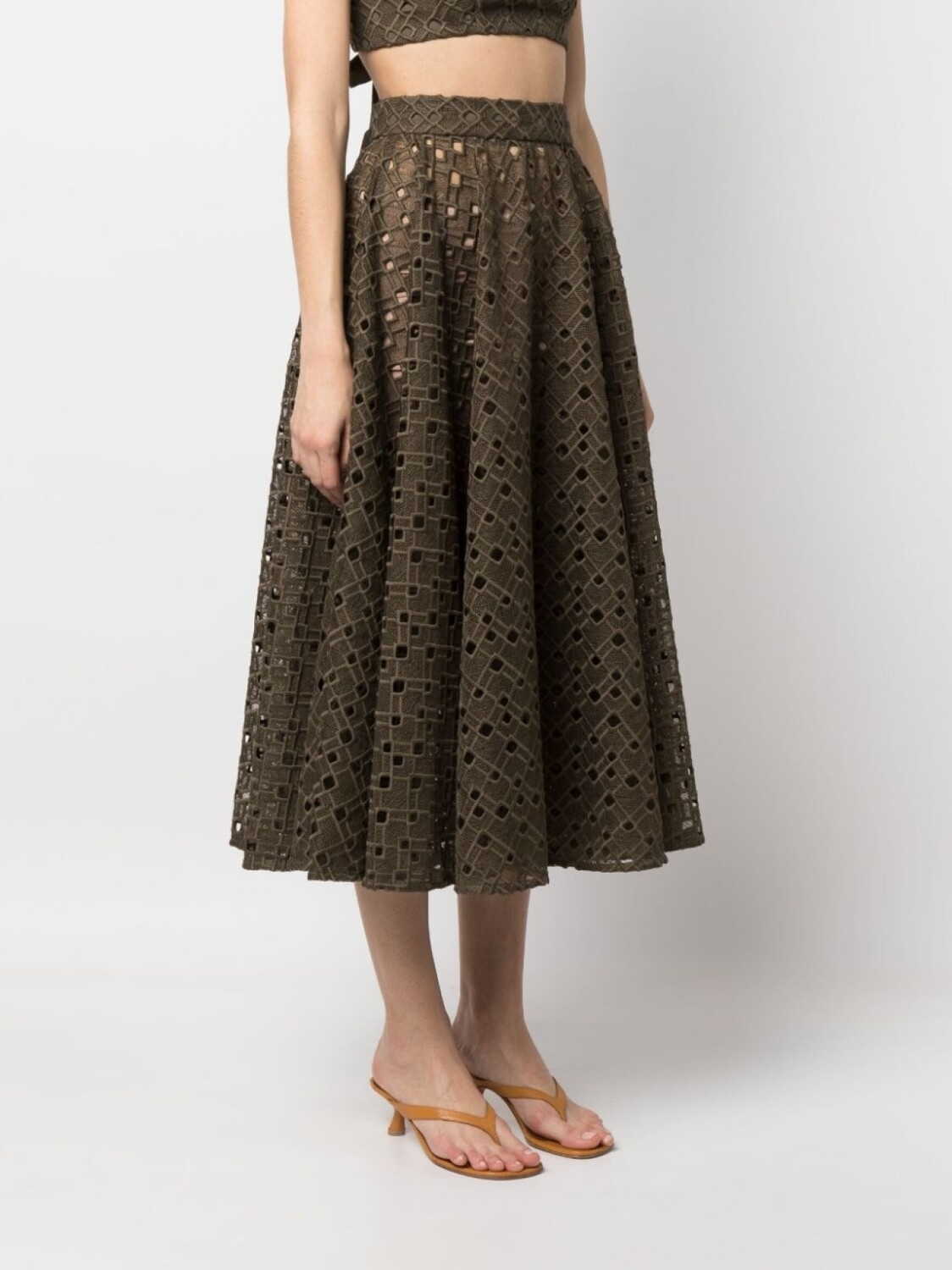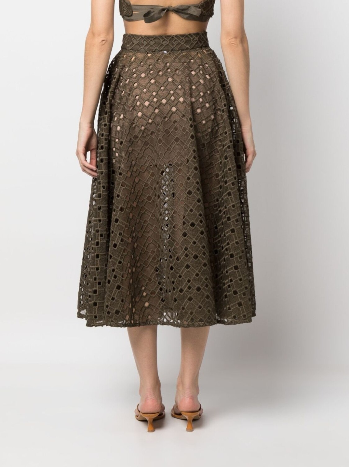 Хаки, люверсы, вышивка, складки, эластичный пояс и прямой подол.