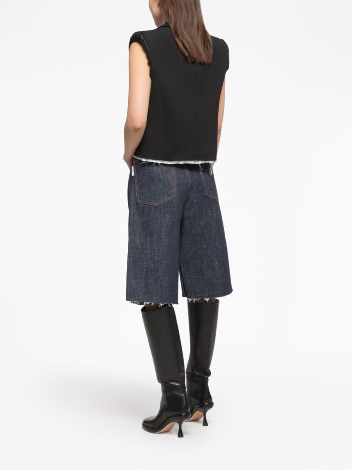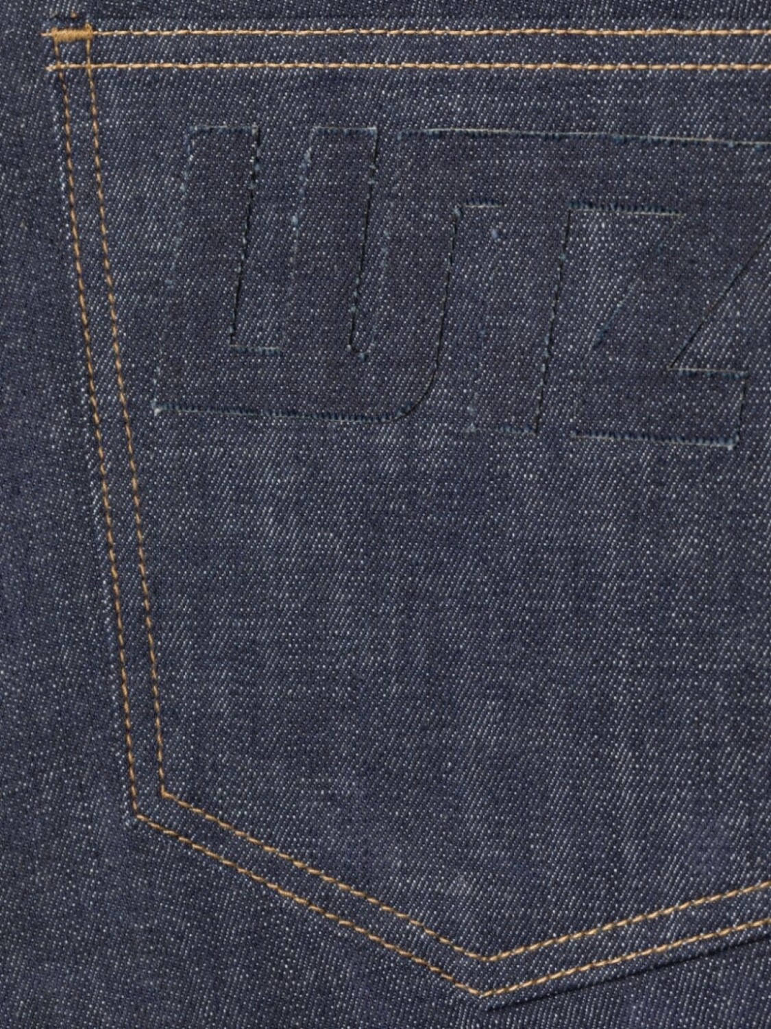 Индиго, смесовый органический хлопок, деним, контрастная строчка, потайная застежка на молнии и пуговицах, петли для ремня, необработанные края и пять карманов. Ответственный выбор: