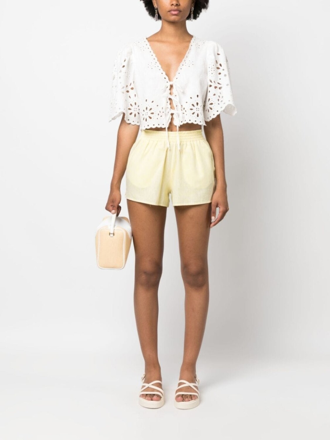 Подробнее о товаре: Светло-желтый, смесь хлопка и льна, складки, эластичный пояс, два накладных кармана сзади и длина до бедер. Этот товар как минимум на 50% состоит из материалов, которые признаны более безопасными для окружающей среды, и/или произведены с использованием методов, которые помогают сократить потребление воды и химических веществ. Узнать больше о том, какие товары получают отметку «Ответственный выбор», можно из материала «Как мы оцениваем экологичность и этичность».
