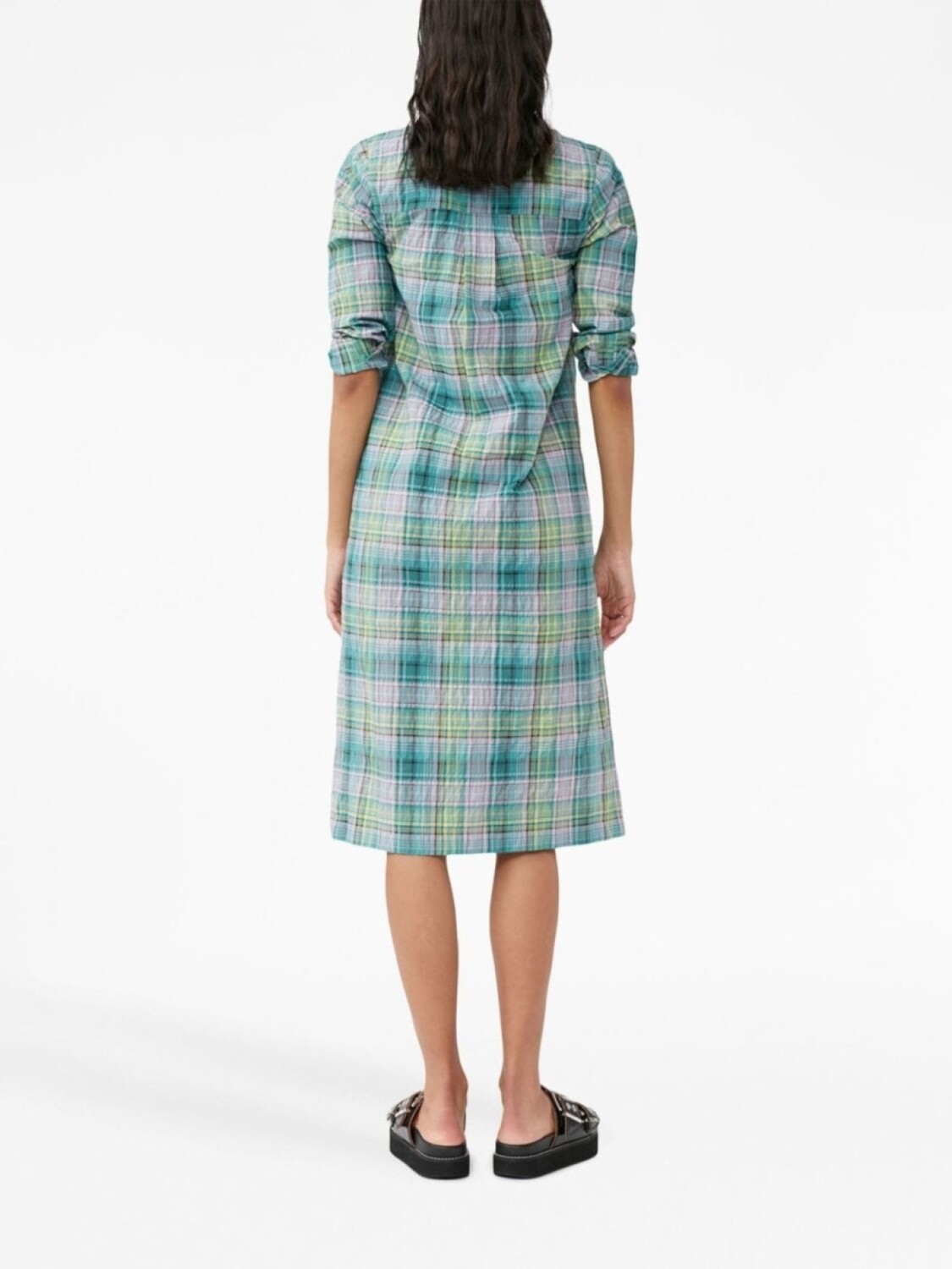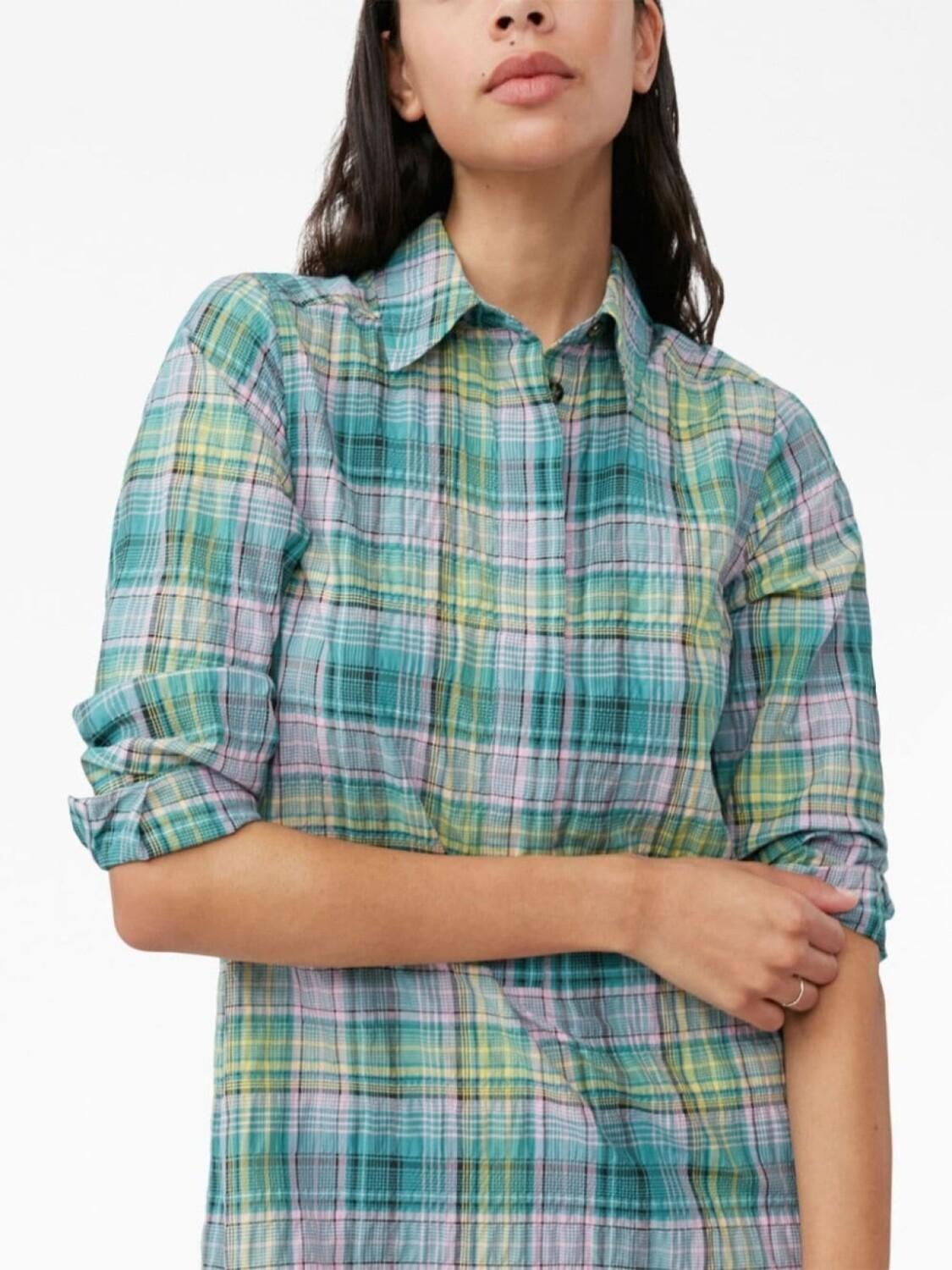 Подробнее о товаре: Разноцветный, смесовый органический хлопок, клетчатый узор, сирсакер, потайная пуговичная застежка спереди, классический воротник, длинные рукава, боковые разрезы, прямой подол и длина по колено. Этот товар как минимум на 50% состоит из переработанных или повторно использованных материалов. Узнать больше о том, какие товары получают отметку «Ответственный выбор», можно здесь.