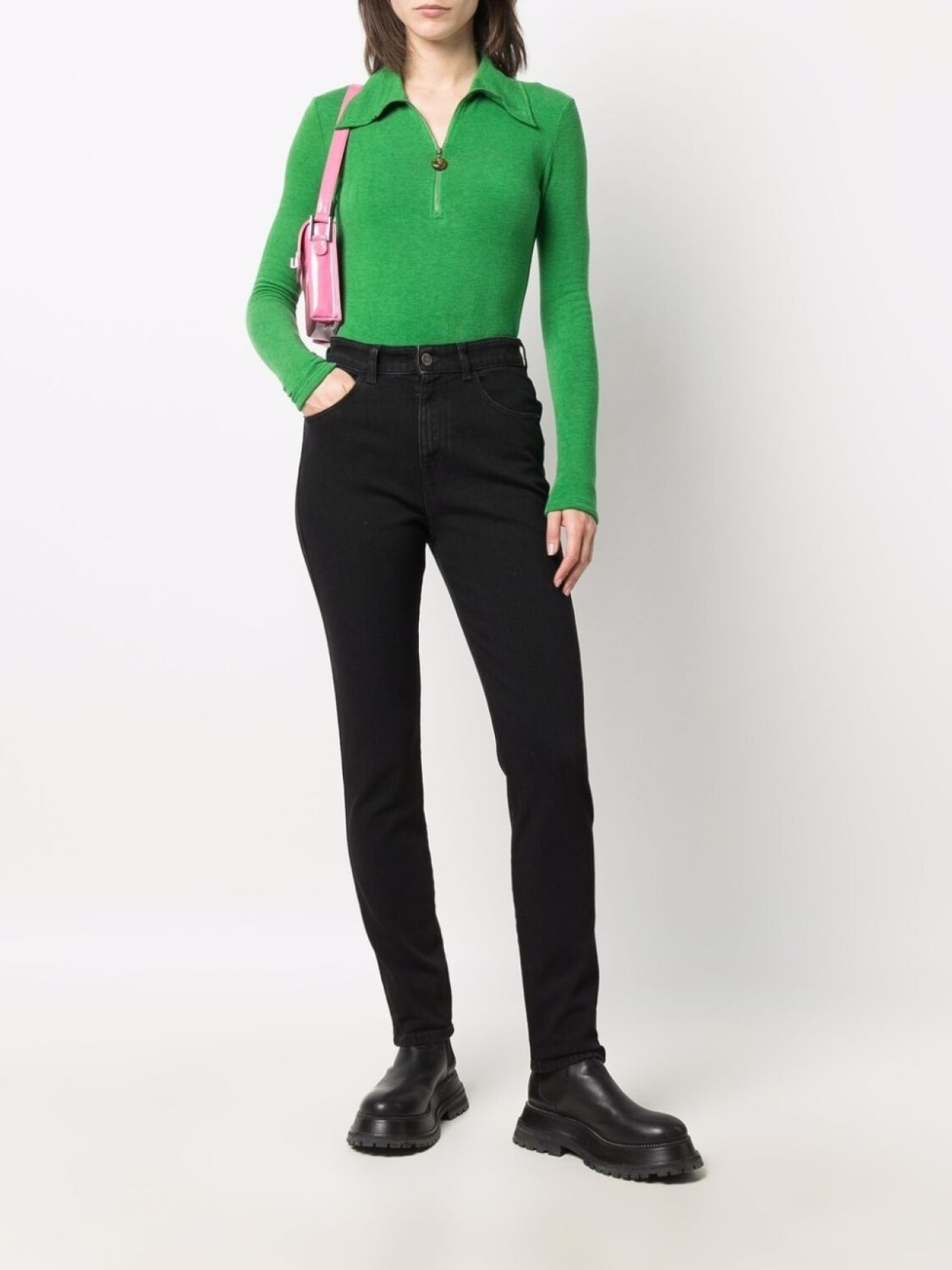 Завышенная талия, застежка на молнии и пуговице спереди, два кармана по бокам, нашивка с логотипом сбоку, прямой крой, нашивка с логотипом сзади и два накладных кармана сзади. Цвет: черный. .