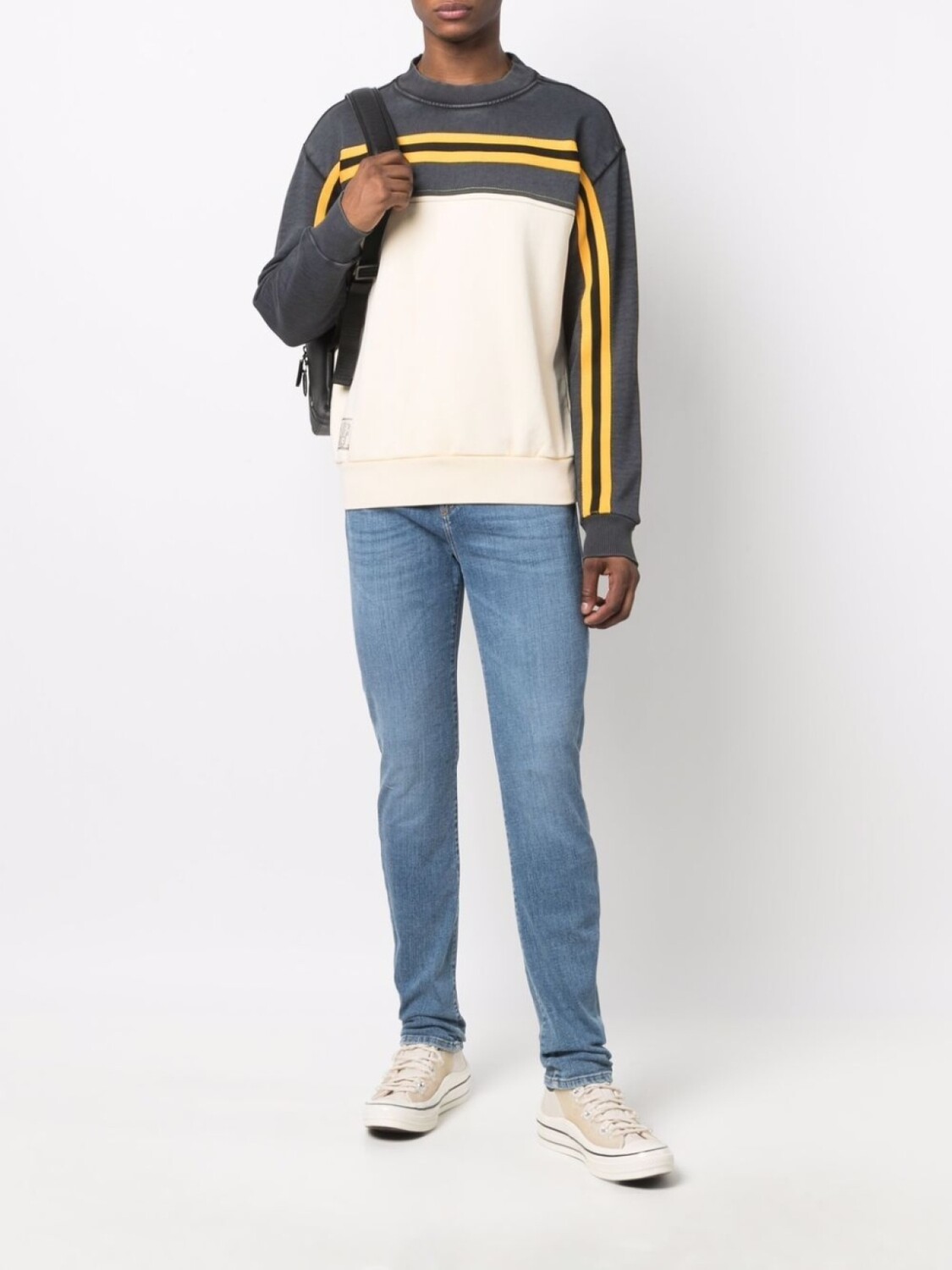 Подробнее о товаре: Обработанный деним, нашивка с логотипом спереди, вышитый логотип сзади, эластичный материал, облегающий крой, завышенная талия, потайная застежка на молнии и пуговицах, пять карманов и петли для ремня. В состав этой модели входит хлопок, производитель которого участвует в Better Cotton Initiative. Производитель может смешивать хлопок Better Cotton с другими видами хлопка..