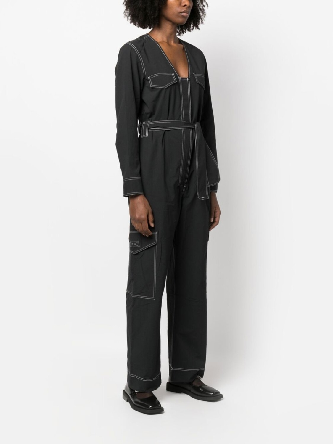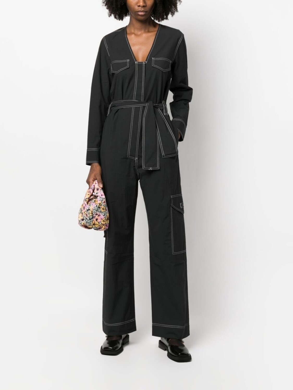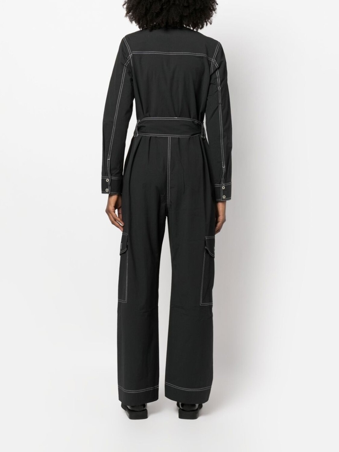 GANNI комбинезон с поясом и контрастной строчкой, черный