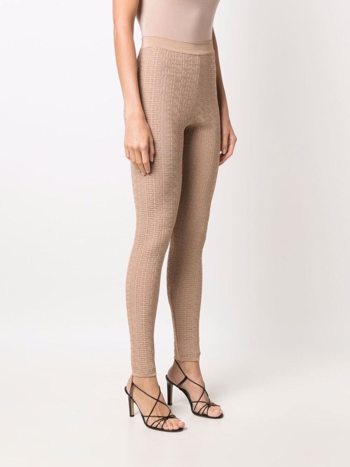 Balmain легинсы с тисненой монограммой, нейтральный цвет