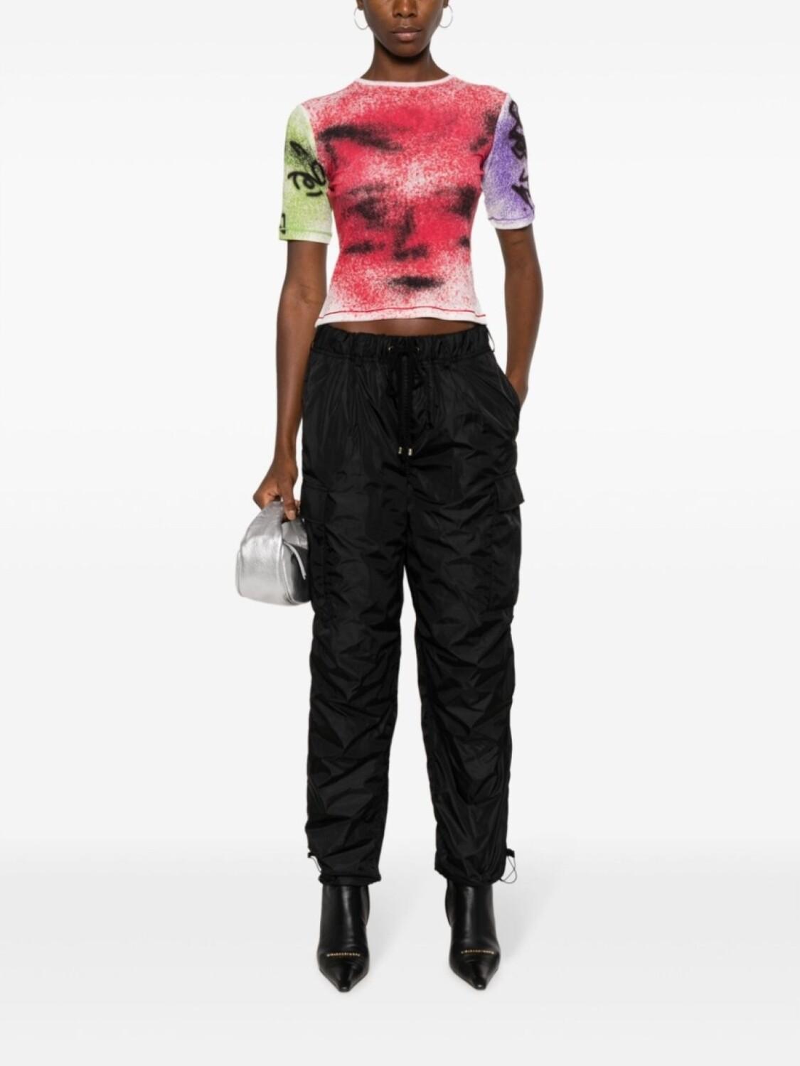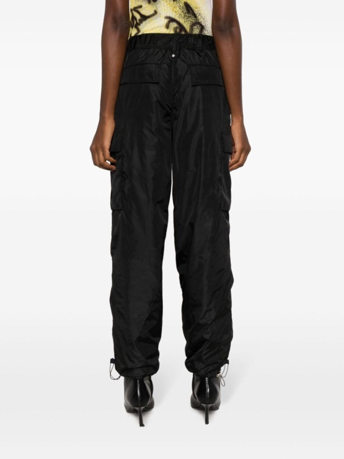 Черный, хлопок, средняя посадка, зауженный крой, металлический логотип, кулиска на талии, два вшитых кармана по бокам, два накладных кармана по бокам, два кармана с клапанами сзади и манжеты с кулиской.