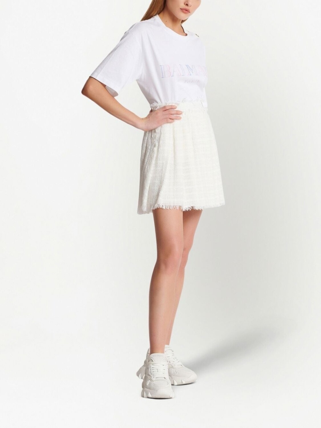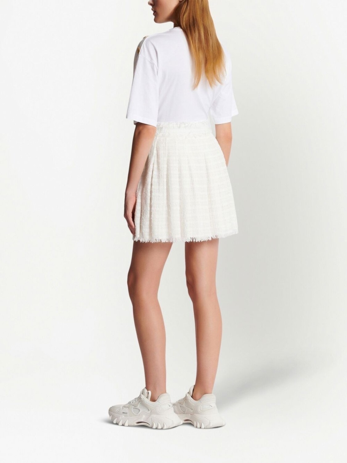 Balmain твидовая мини-юбка со складками, белый