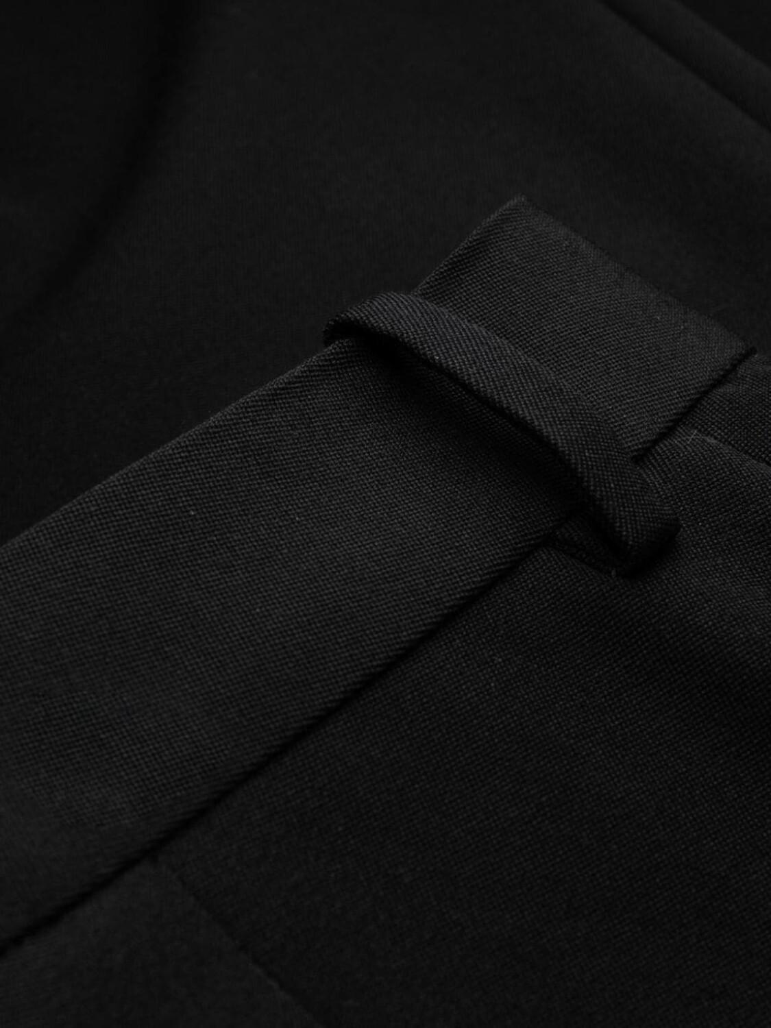 Черный, средняя посадка, петли для ремня, потайная застежка спереди и широкий крой.