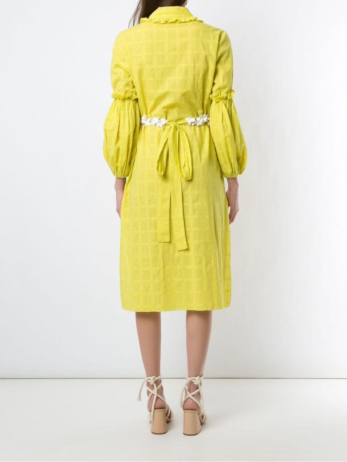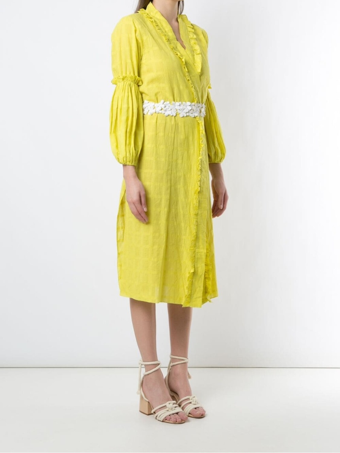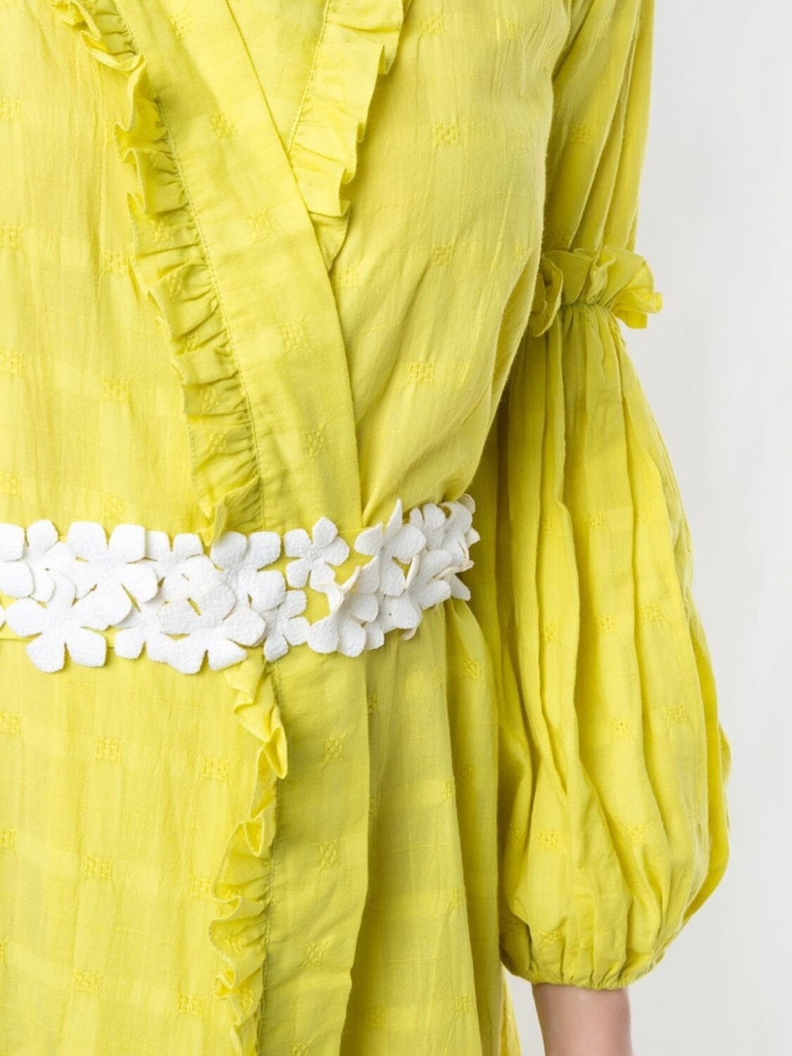 Платье миди Krista от Clube Bossa. V-образный вырез с запахом, длинные рукава, отделка с гофром, аппликация в форме цветов и свободный крой. Цвет: зеленый.