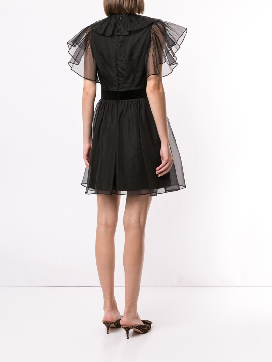 Платье мини Sandpiper от McGraw (МакГроу). Модель с низким декольте, V-образная горловина, расклешенная юбка, потайная застежка на молнии сзади и короткая длина. Цвет: черный.