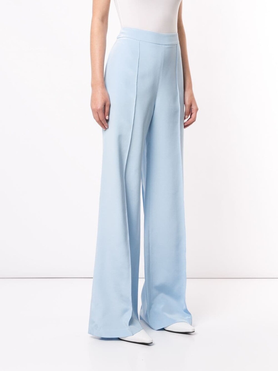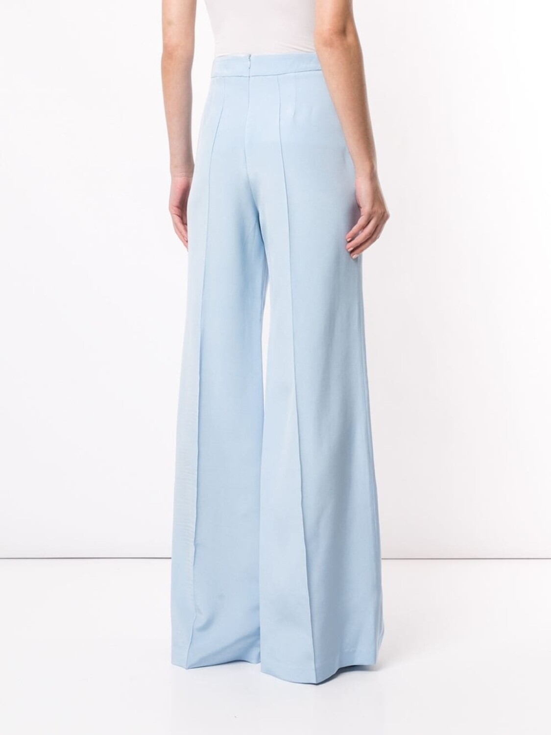 Расклешенные брюки Peacock от McGraw (МакГроу). Завышенная талия, потайная застежка на молнии сзади, расклешенный силуэт и удлиненная модель. Цвет: синий.