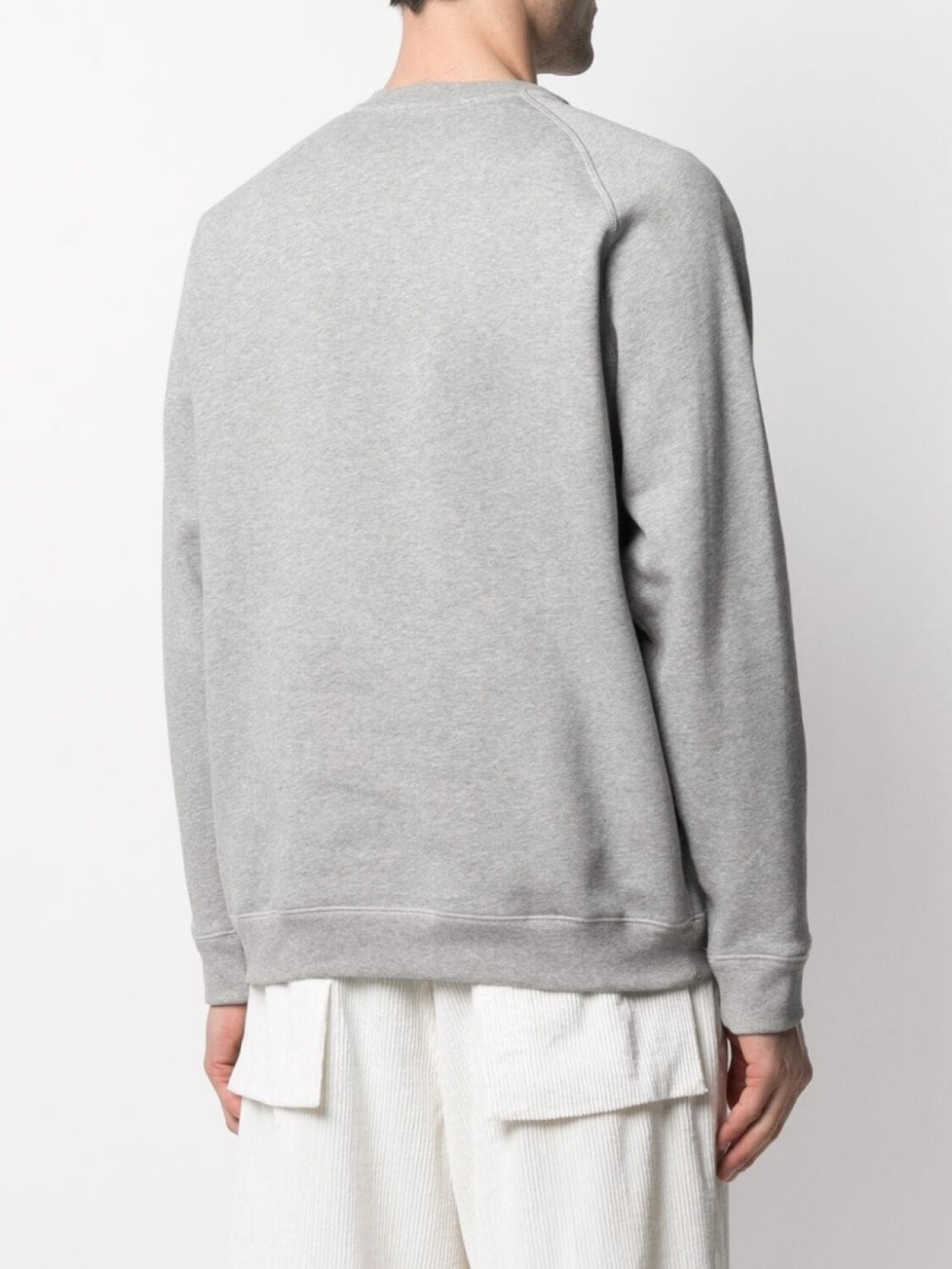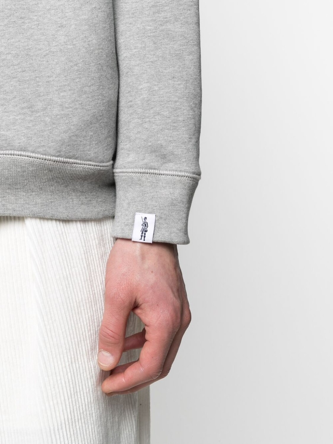 Круглый вырез, прямой подол, длинные рукава реглан и нашивка с логотипом на рукаве. Цвет: серый.