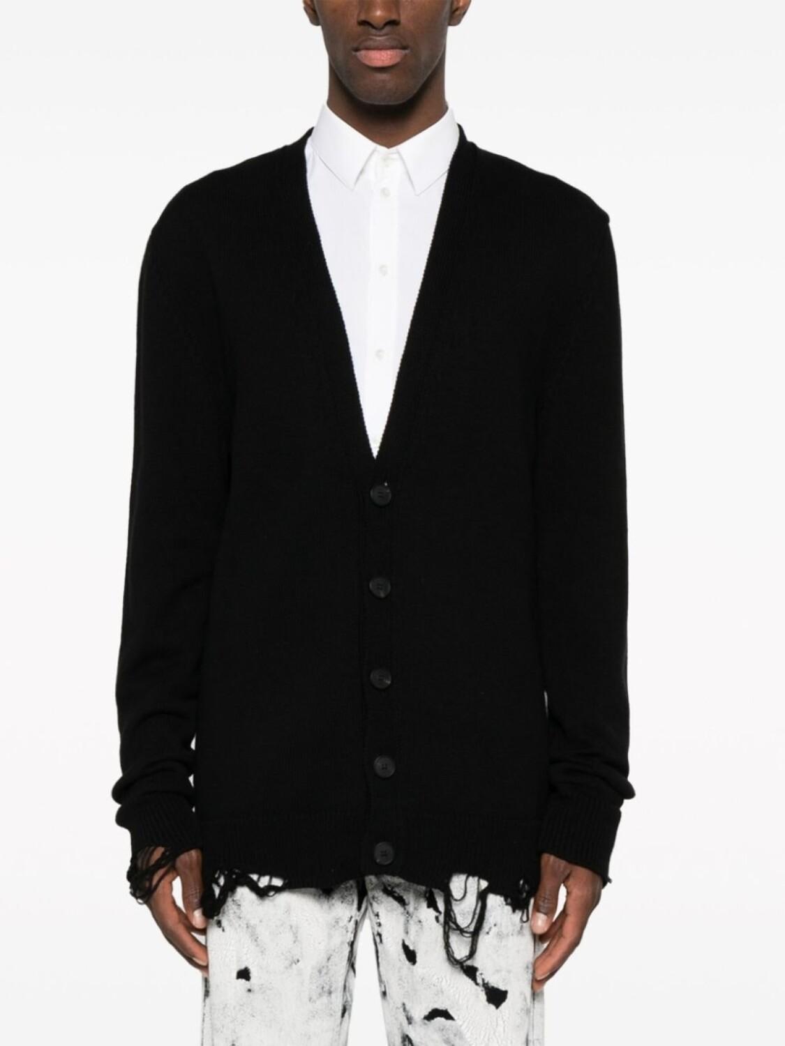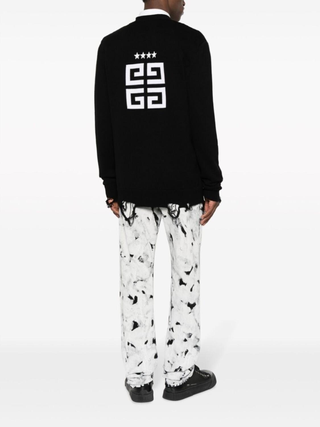 Черный, хлопок, трикотажный материал, знаковый узор 4G, V-образный вырез, длинные рукава и эффект потертости.