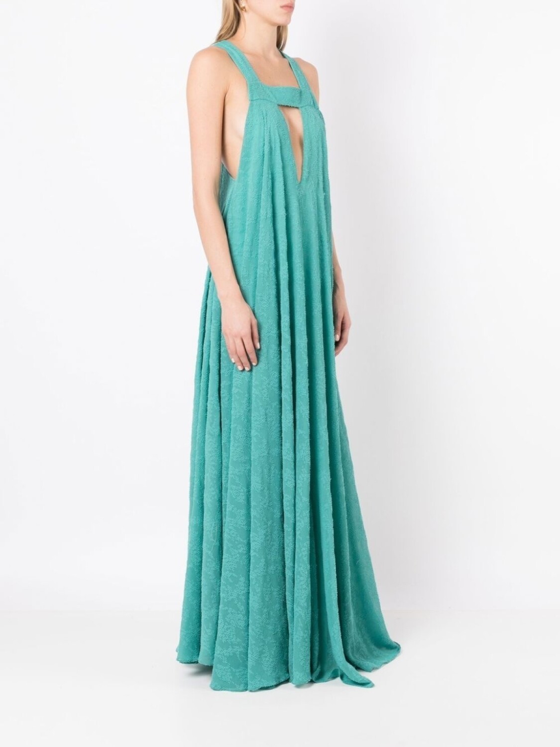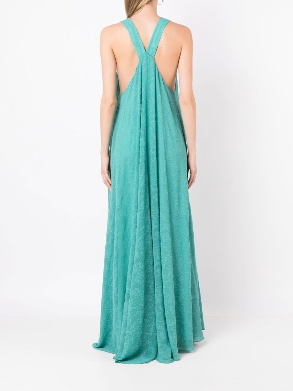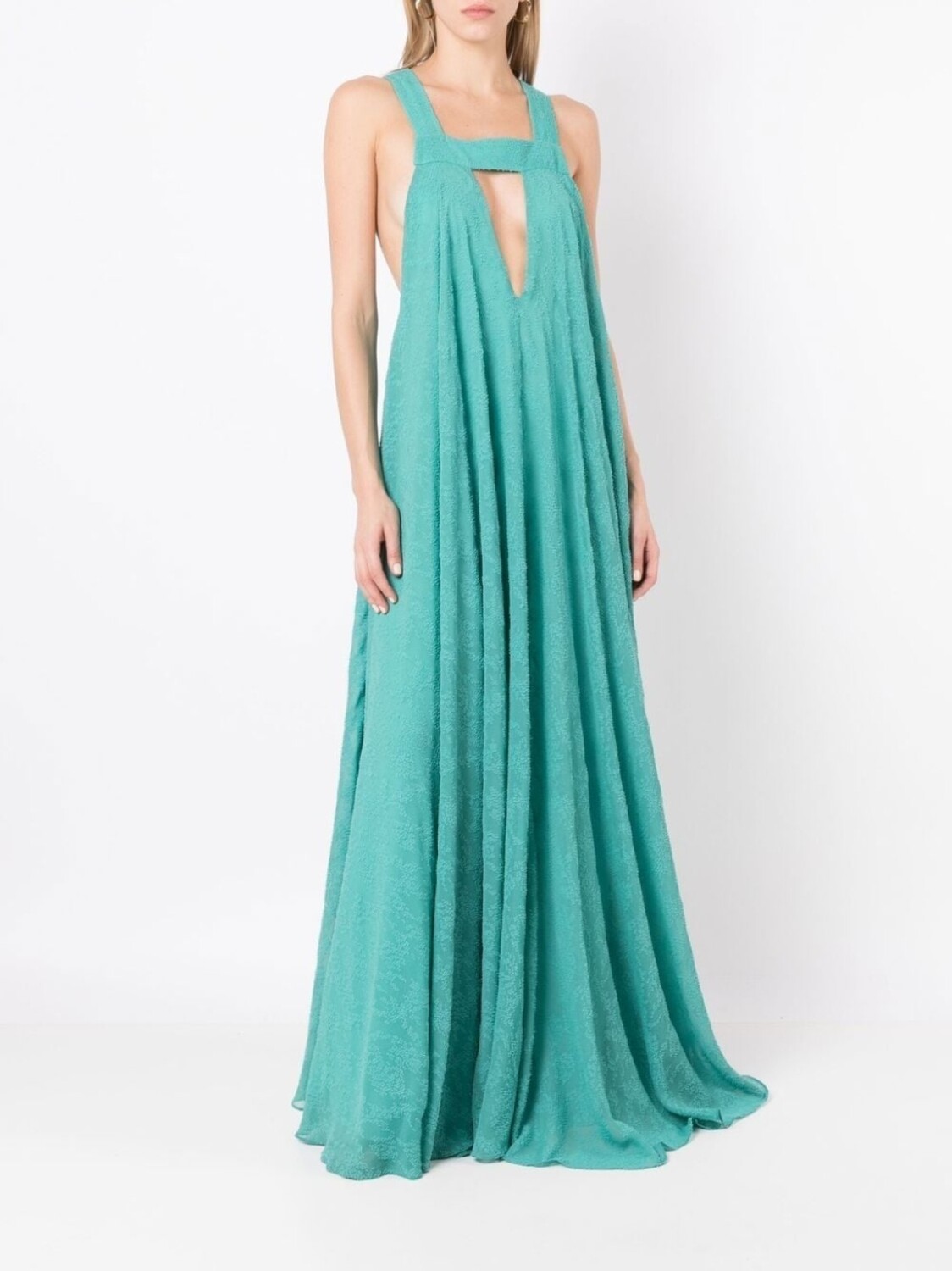Бирюзовый, квадратный вырез, глубокий V-образный вырез, без рукавов, вырез рейсер, А-образный силуэт и длина макси.