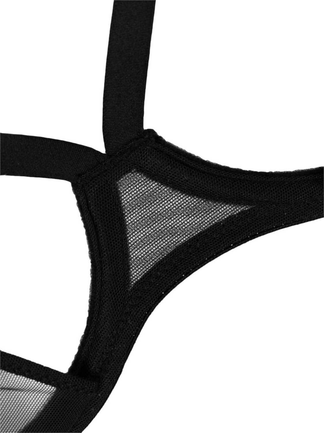 Черный, эластичный материал, чашка на косточках, прозрачные вставки, сетчатые вставки, съемные сетчатые вставки, застежка на крючок