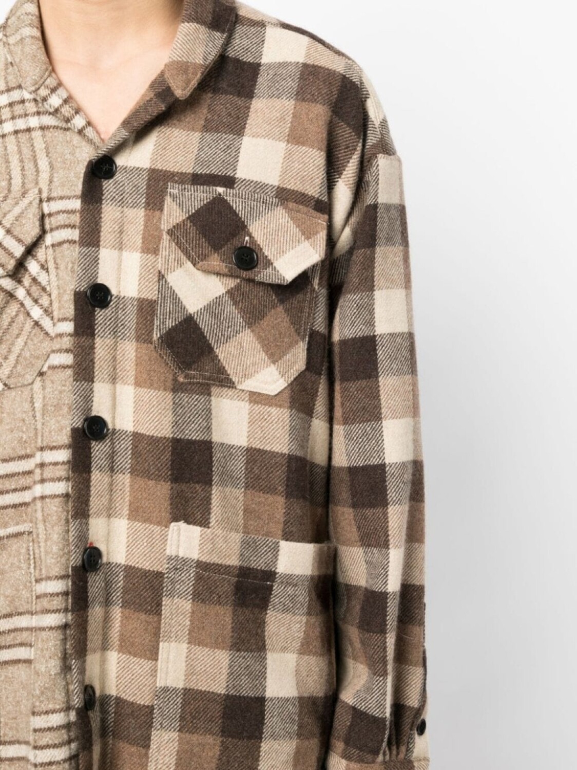 Подробнее о товаре: Коричневый, смесовая шерсть, клетчатый узор, смешанный принт, лацканы-шалька, застежка на пуговицах спереди, приспущенные плечи, длинные рукава, манжеты на пуговицах, два нагрудных кармана с клапанами, два накладных кармана спереди и необработанные края. Узнать больше о том, какие товары получают отметку «Ответственный выбор», можно из материала «Как мы оцениваем экологичность и этичность».