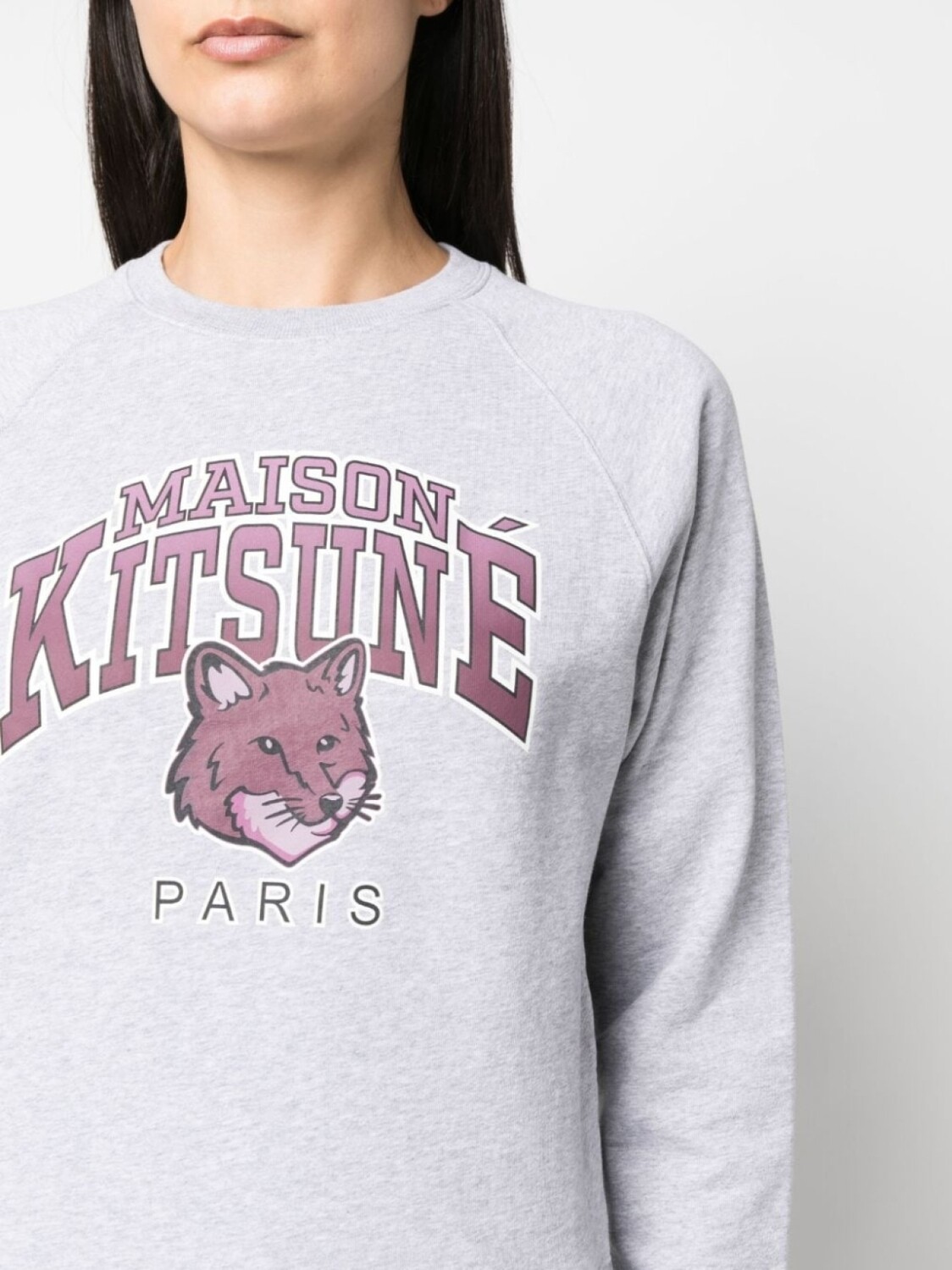 Светло-серый, хлопок, трикотажный материал, эффект меланж, знаковый узор с изображением лисы, логотип спереди, круглый вырез и длинные рукава.