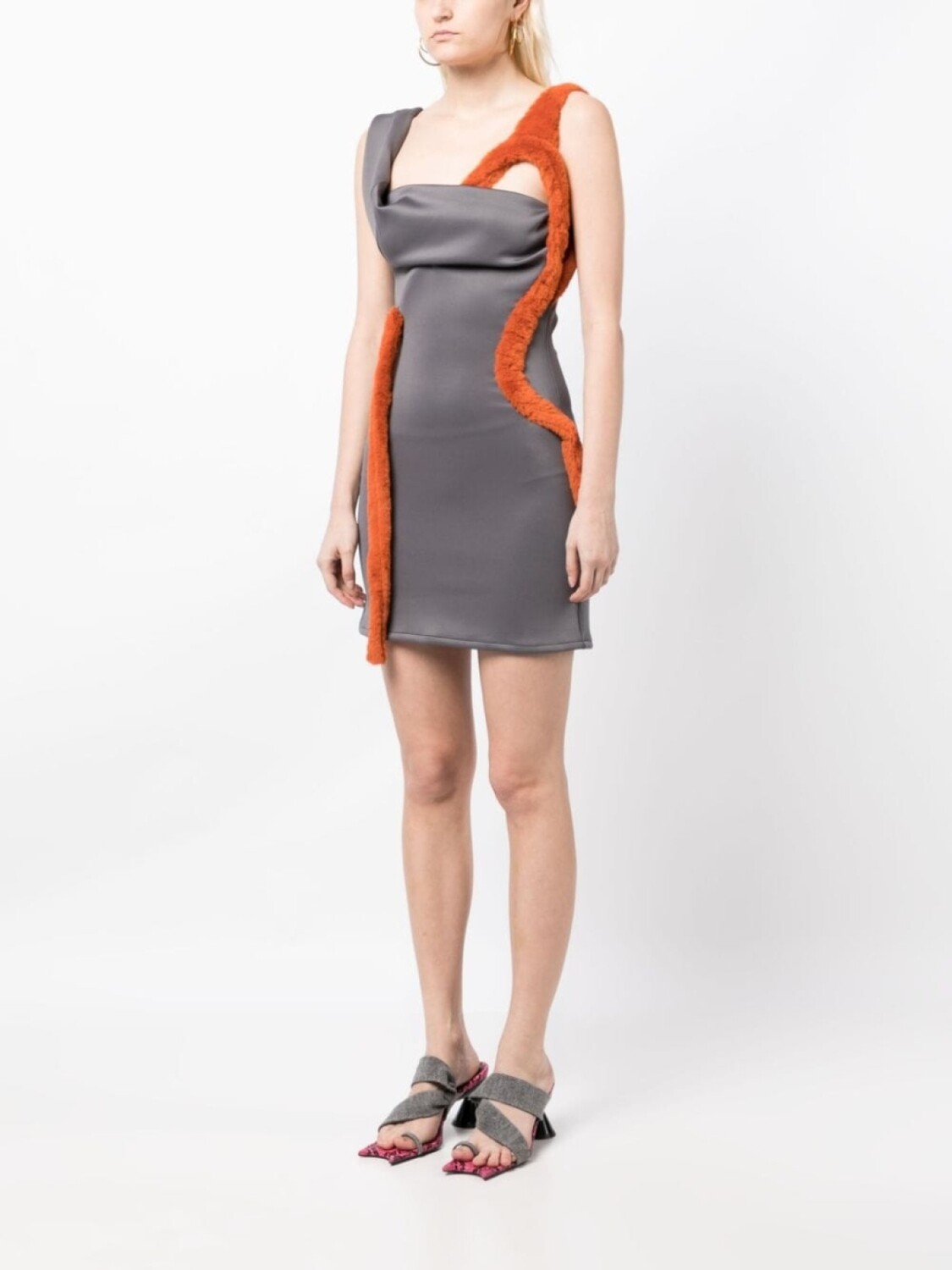 Ottolinger платье мини с искусственным мехом, серый
