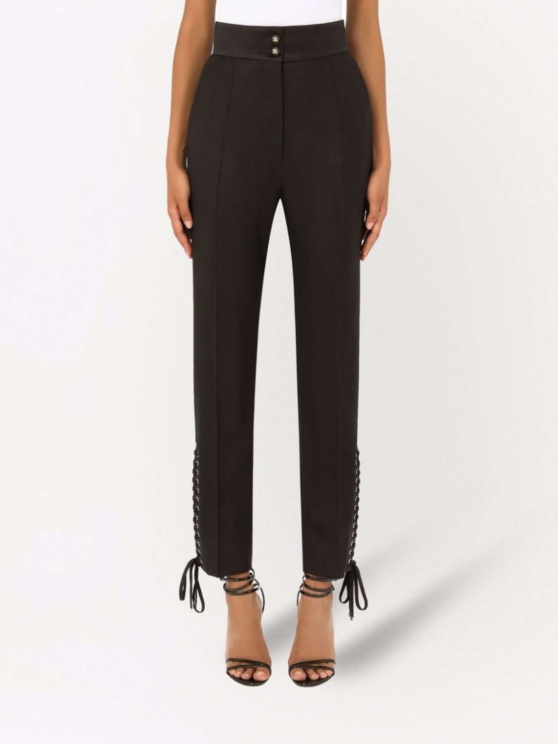 Завышенная талия, классический крой, шнуровка, застежка на пуговицах спереди, прорезные карманы по бокам и задние карманы с листочкой. Цвет: черный.