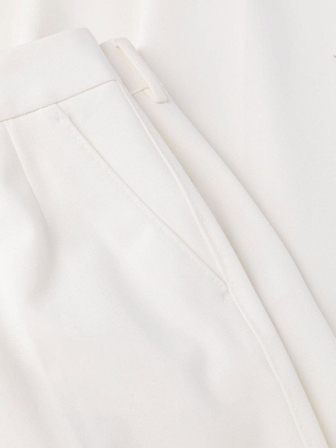 Завышенная талия, петли для ремня, застежка на молнии и пуговице спереди, два прорезных кармана по бокам, два кармана с листочкой сзади, стрелки, узкий крой и укороченная длина. Цвет: белый.