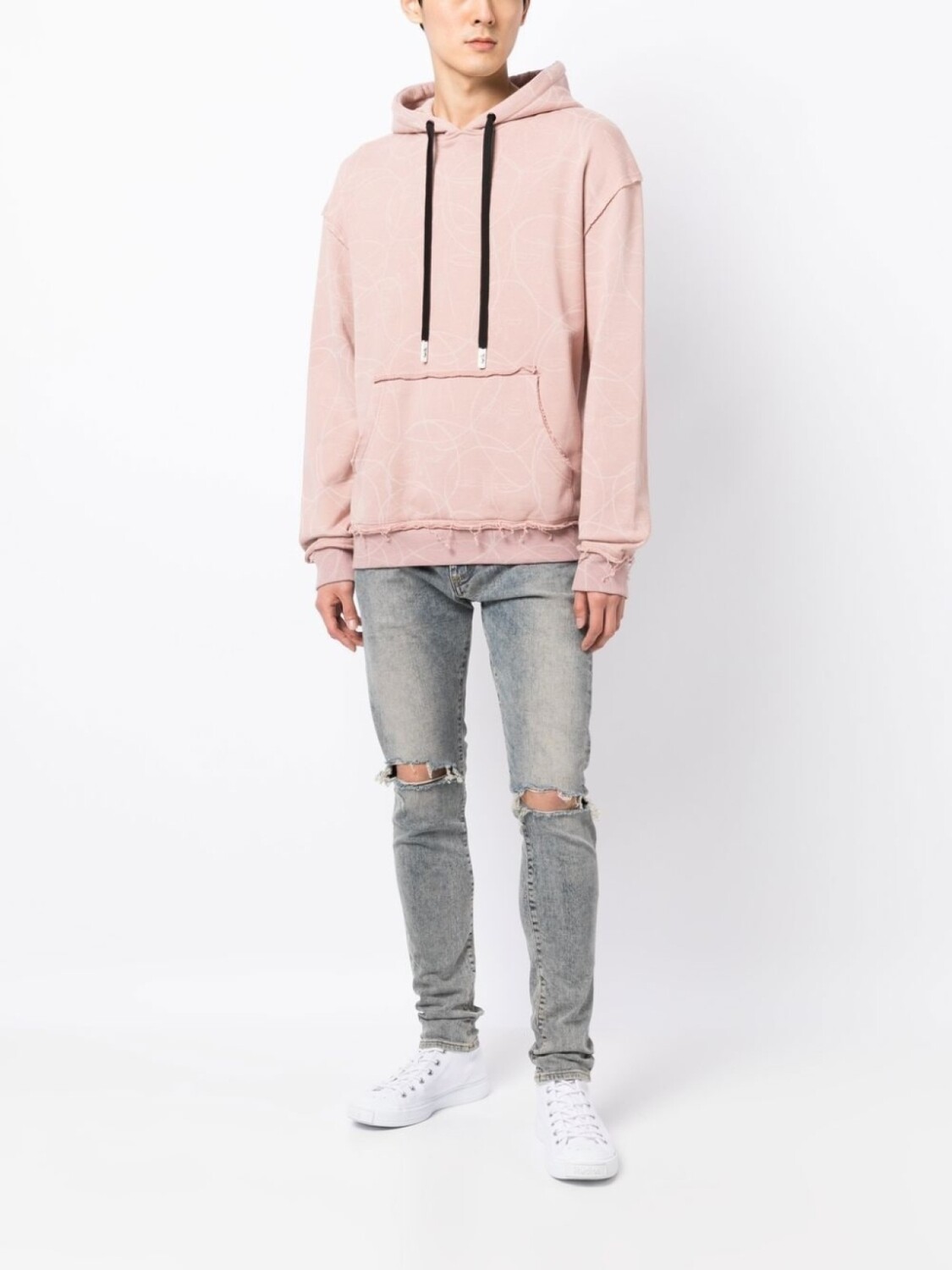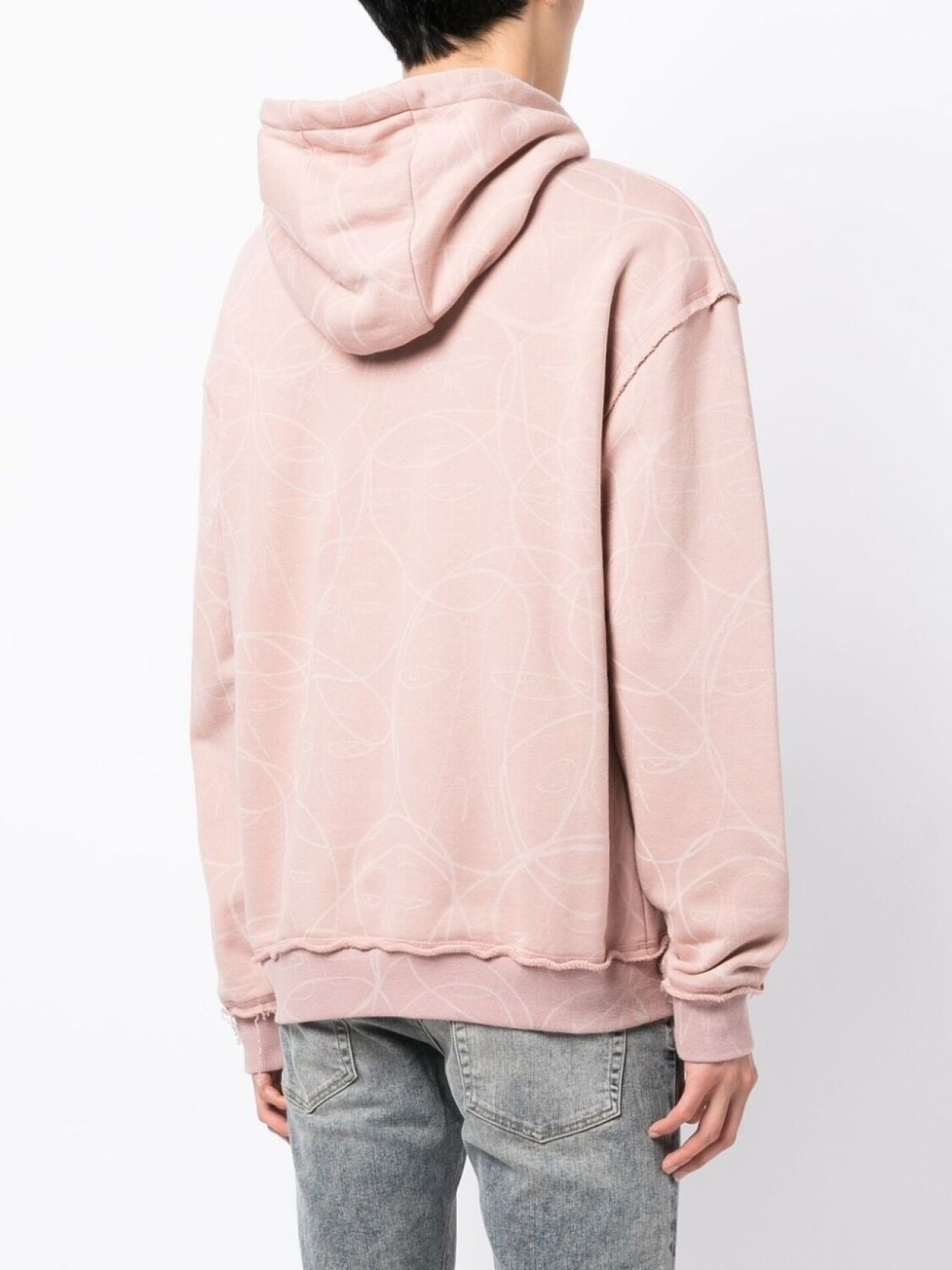Расцветка Blush Pink, черный, хлопок, принт с абстрактным узором, необработанные детали, затягивающийся на шнурок капюшон, длинные рукава, прямой подол и карман-муфта.