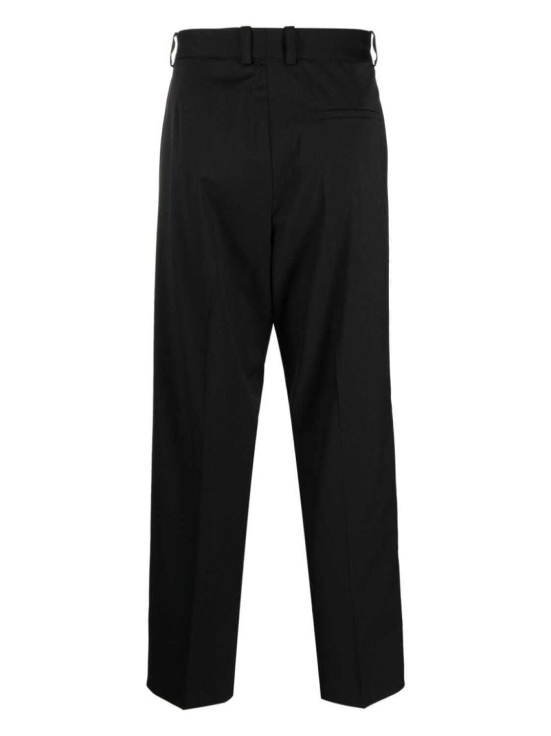 Черный, петли для ремня, строгий крой, ширинка на пуговицах и прорезной карман сзади.