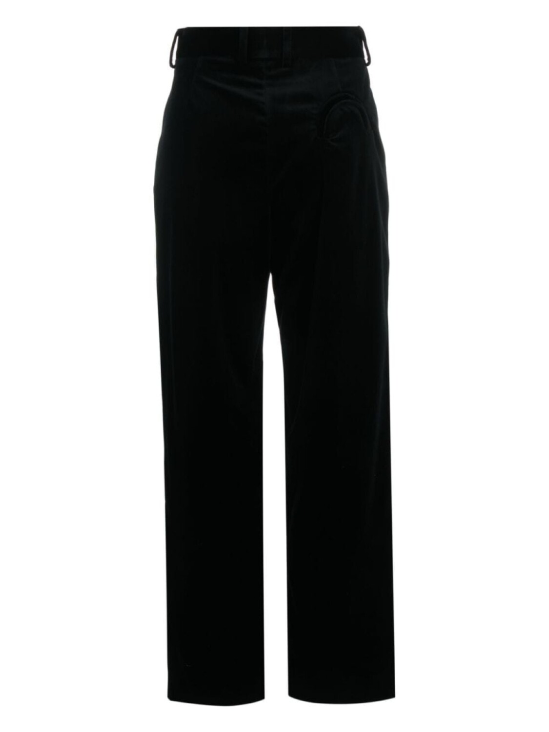 Черный, хлопок, вышивка, потайная застежка на молнии и пуговицах, прямой крой, петли для ремня, два вшитых кармана по бокам и прямой подол.
