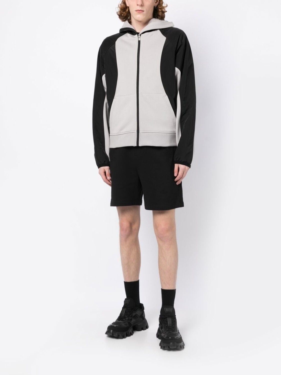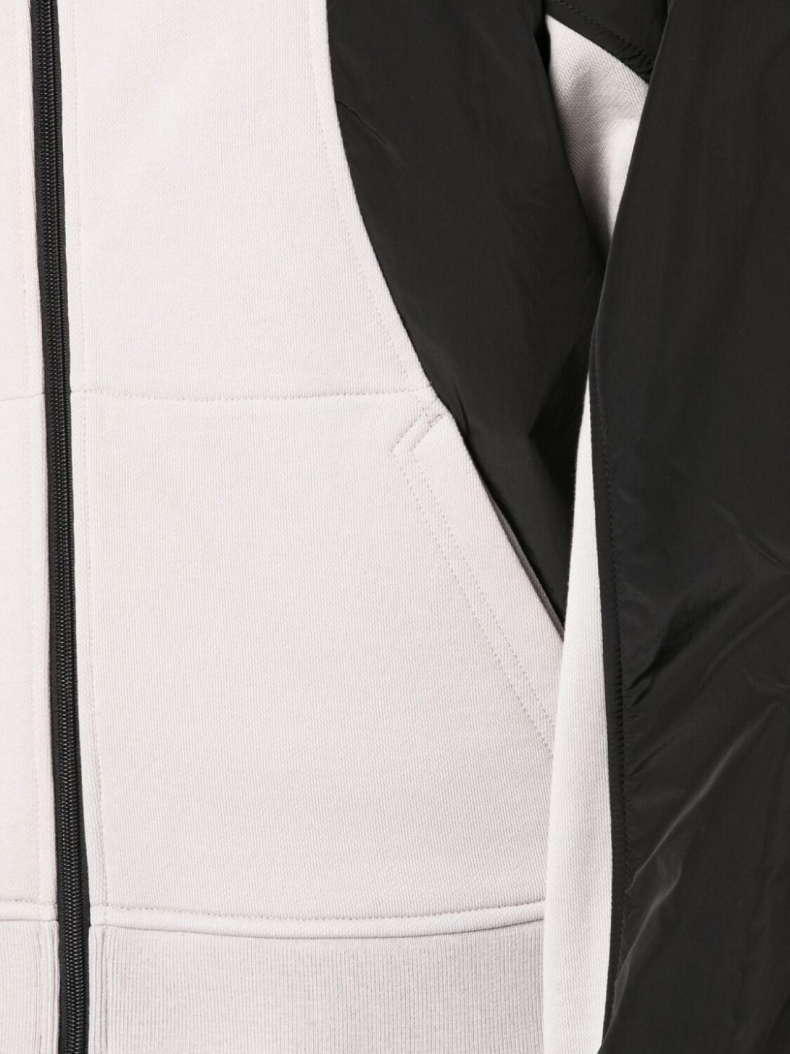Черный/серый, хлопок, круглый вырез, классический капюшон, длинные рукава и два кармана на молнии по бокам.