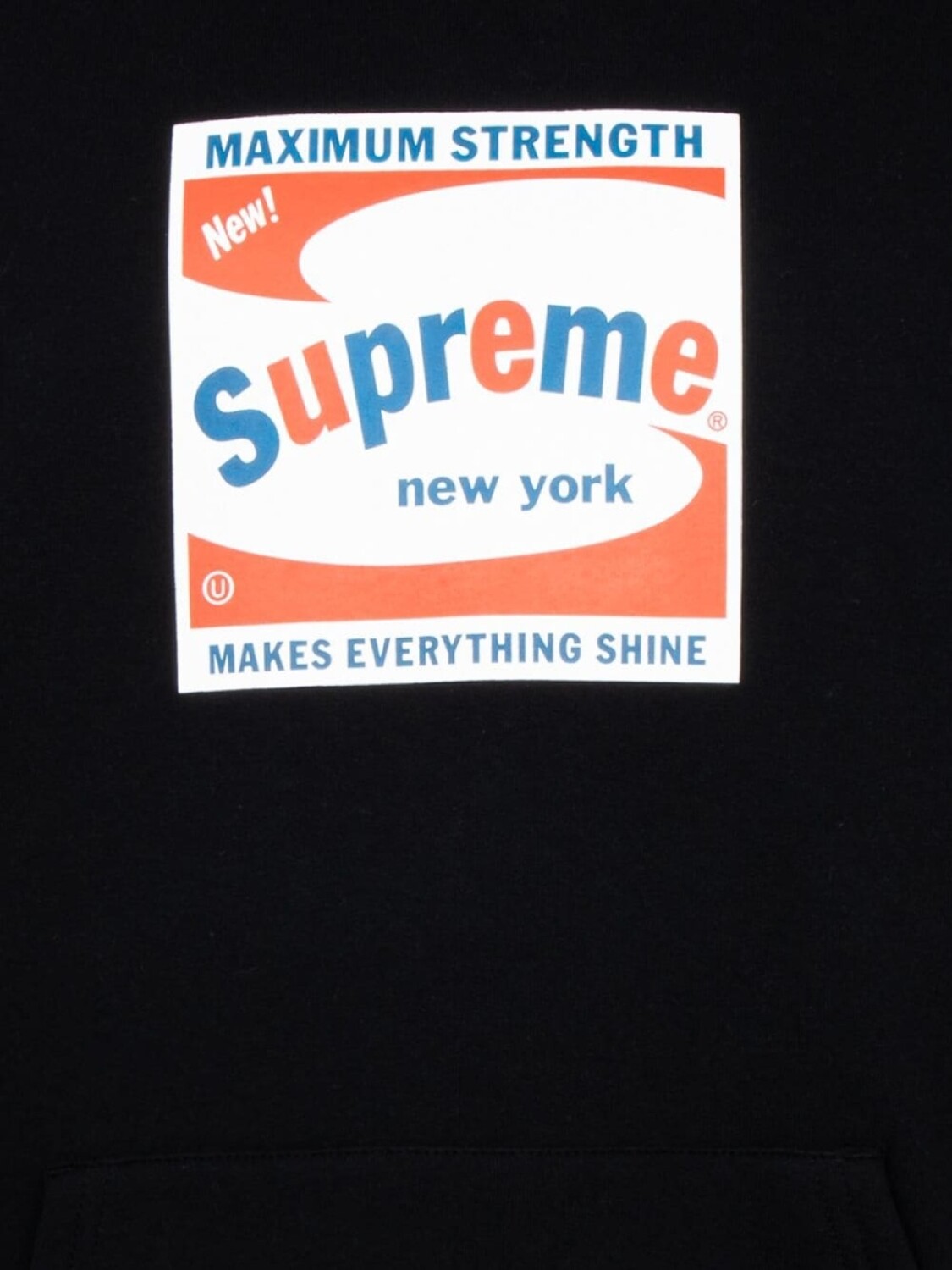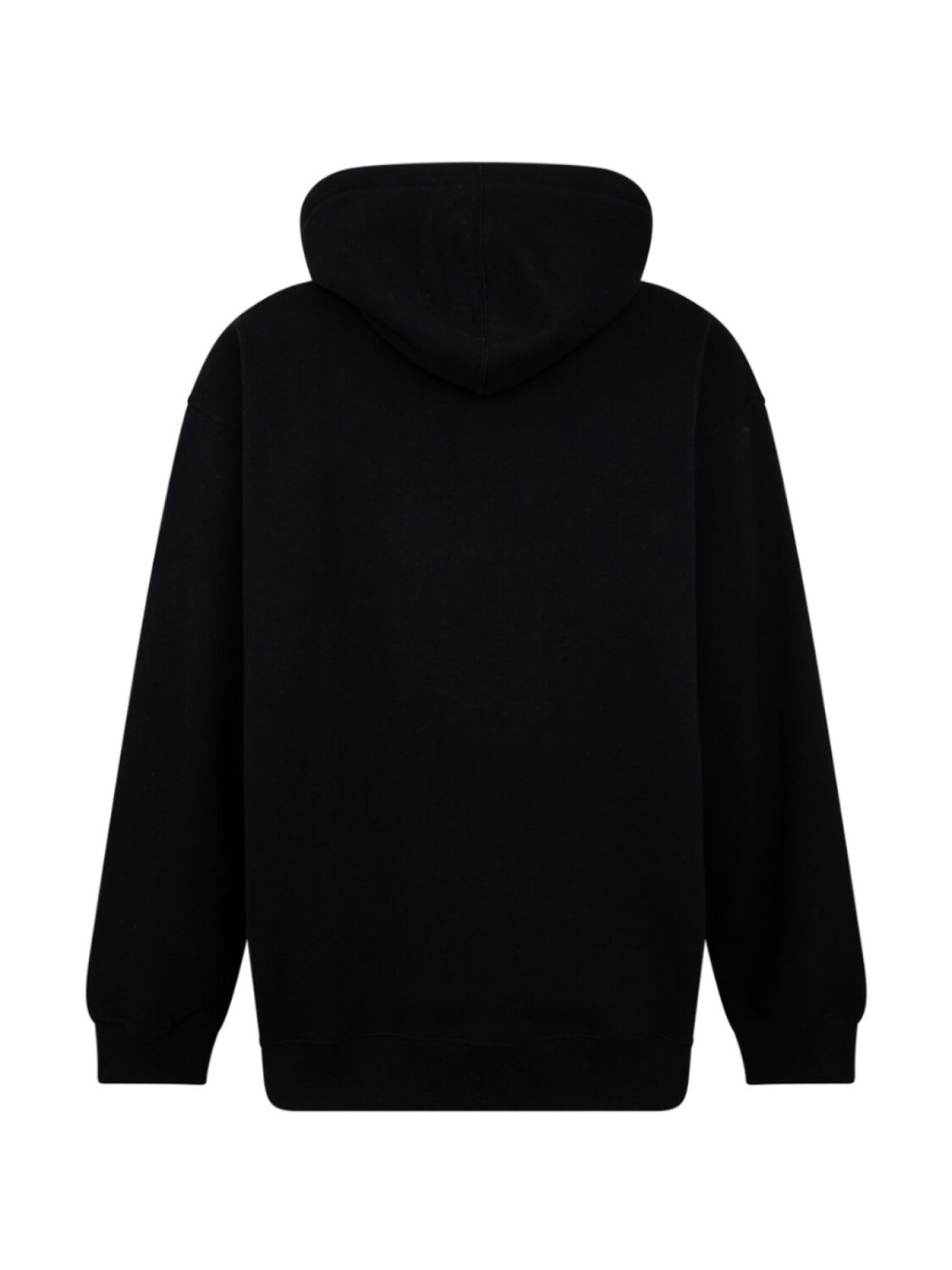 Логотип спереди, затягивающийся на шнурок капюшон, карман-муфта, длинные рукава и прямой подол. Цвет: черный.
