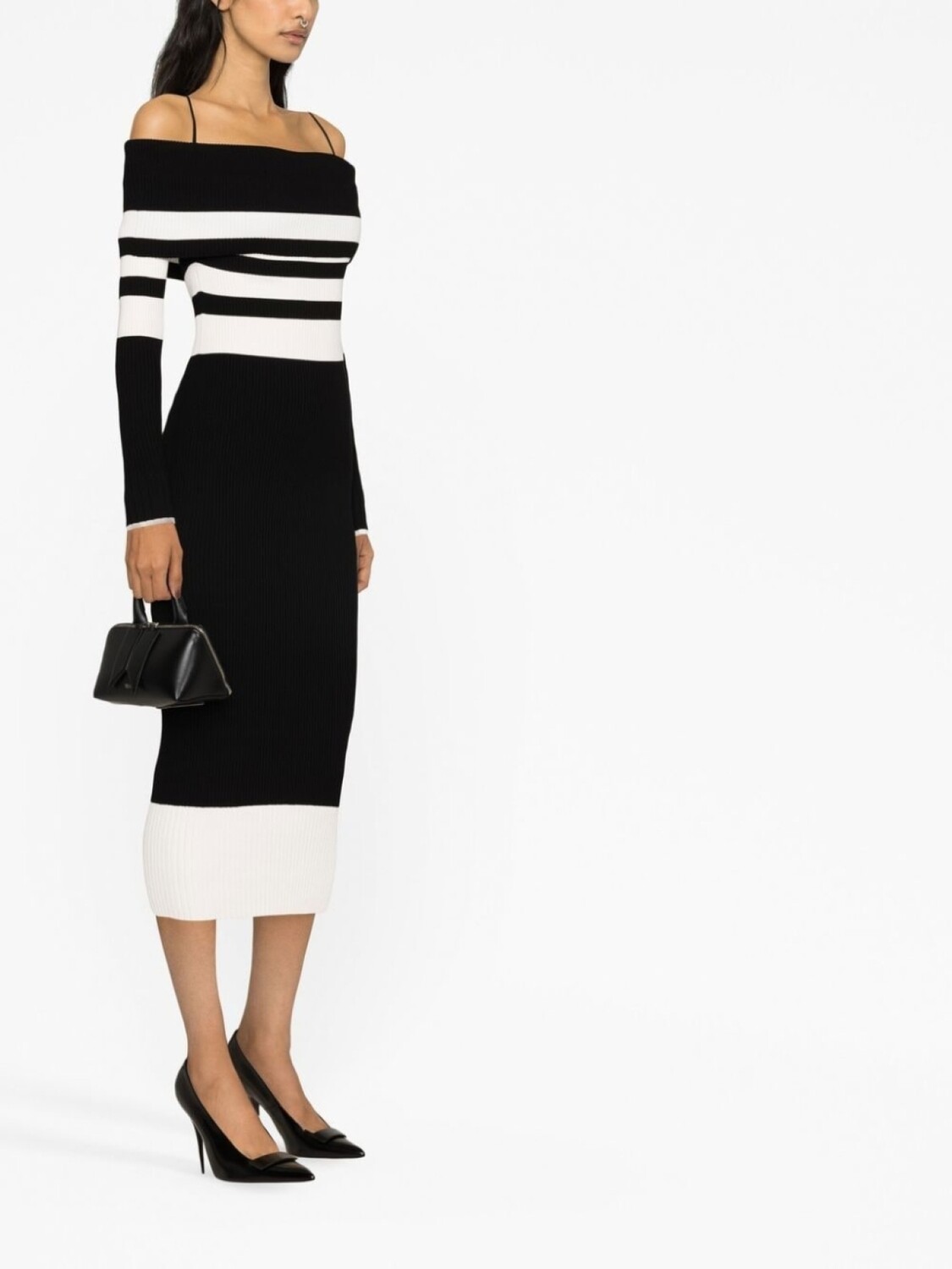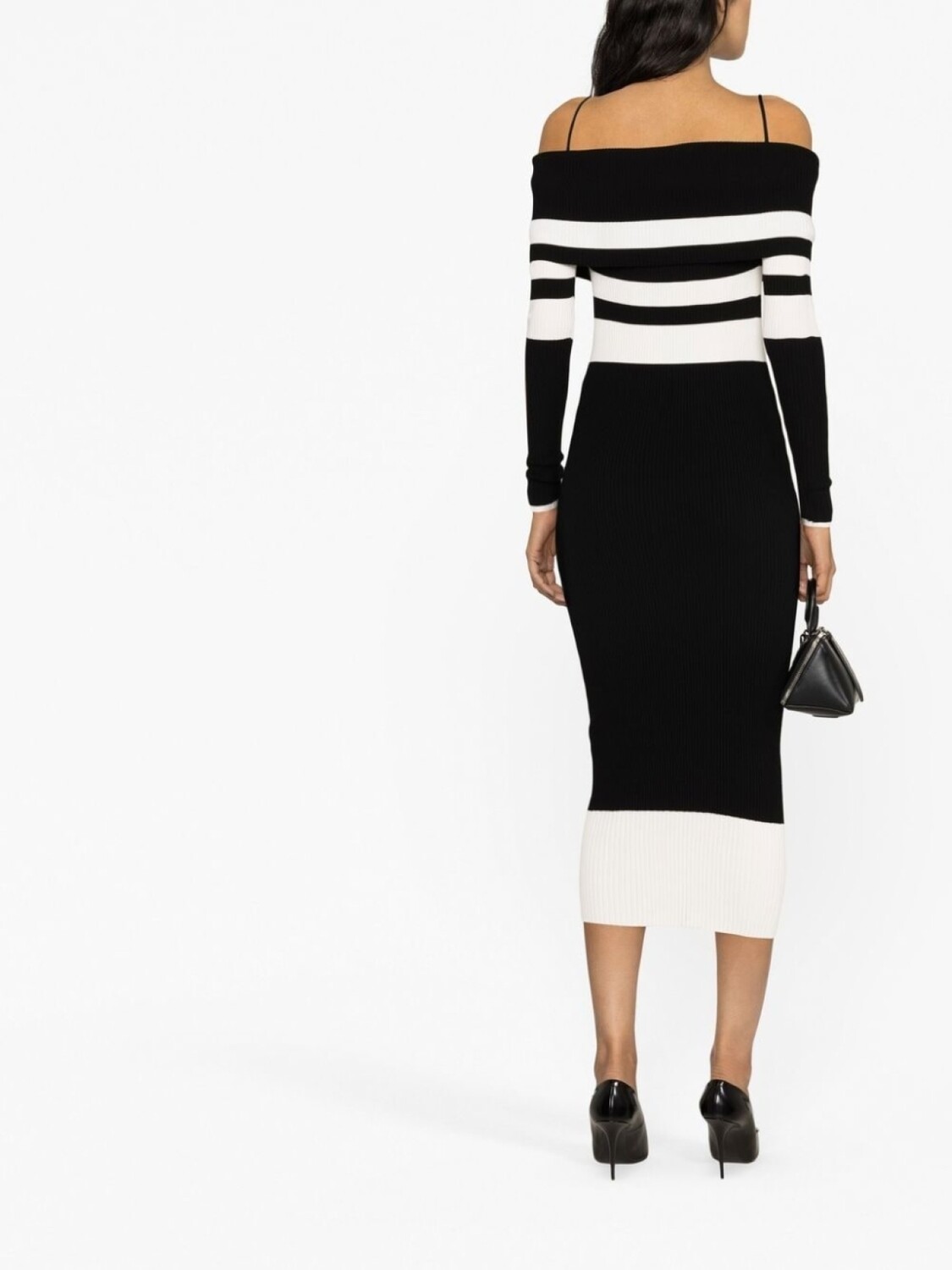 The Attico striped off-shoulder knitted dress, черный 66 040₽