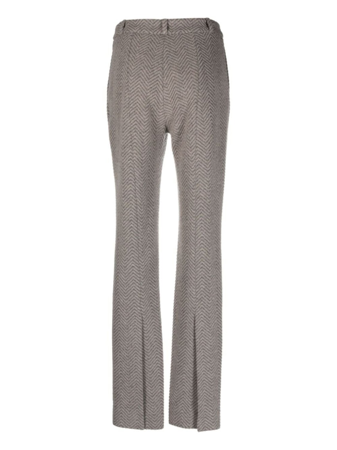 Серый, фактурная отделка, стрелки, петли для ремня, потайная застежка спереди и прямой крой.