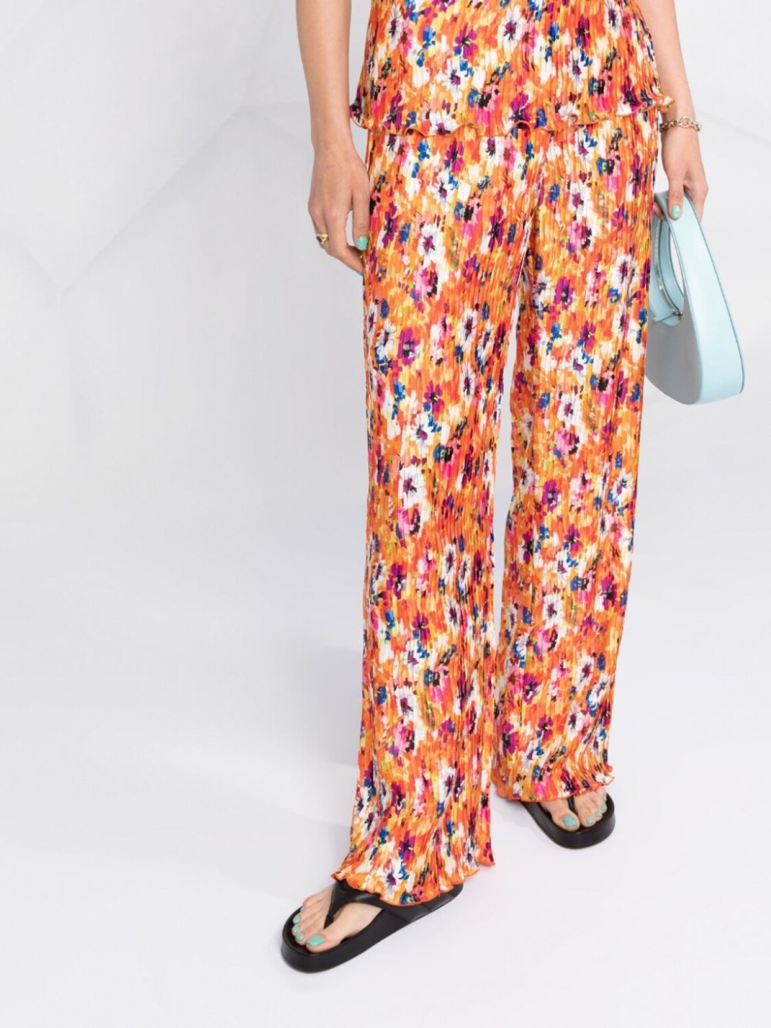 MSGM плиссированные брюки с цветочным принтом, оранжевый