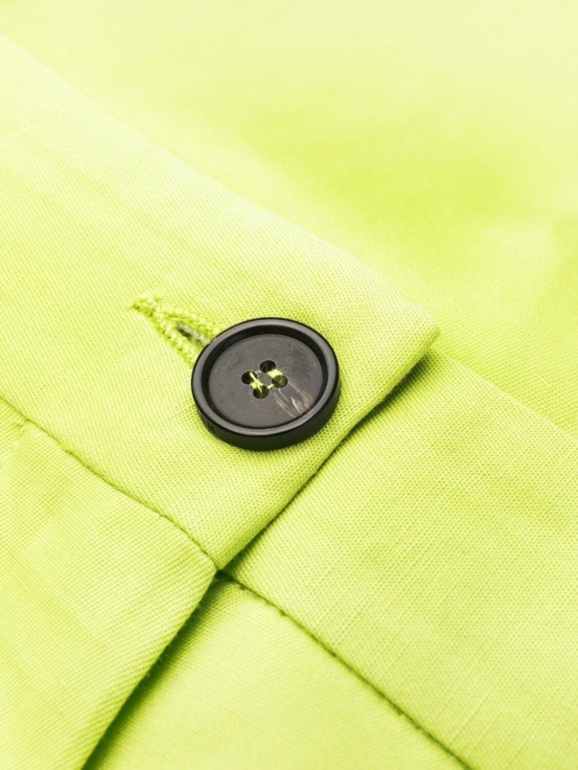 Салатовый, завышенная талия, петли для ремня, застежка на молнии и пуговице спереди, два кармана с листочкой сзади и свободный крой.