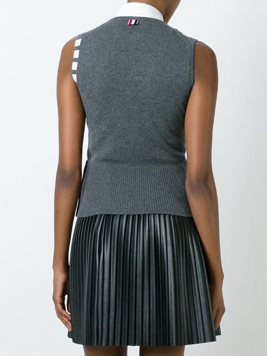 Серый кашемировый вязаный топ без рукавов от Thom Browne.
