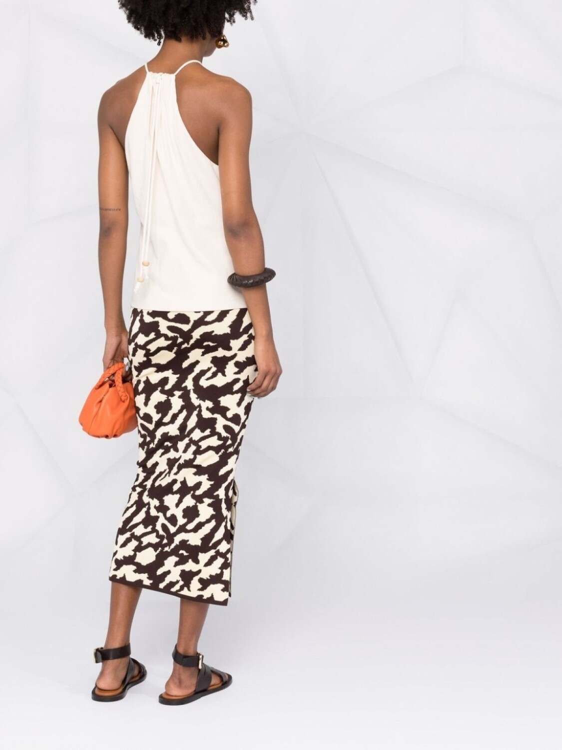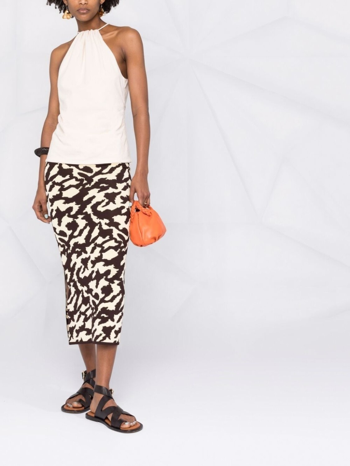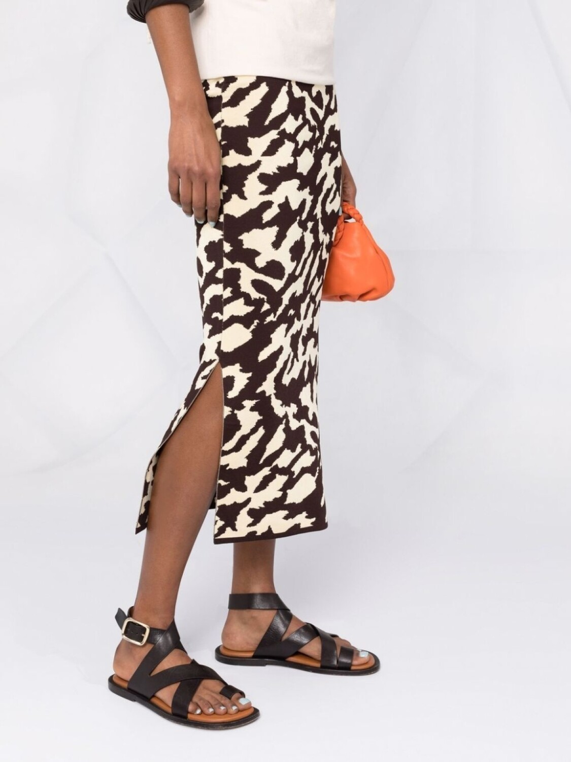 Эластичная модель, тонкая вязка, анималистичный принт, завышенная талия, боковые разрезы, длина миди и прямой подол. POSITIVELY CONSCIOUS: Мы объединились с агентством Good On You, которое оценивает бренды по степени их влияния на животных, людей, и планету в целом. Этот бренд стремится минимизировать негативное влияние на окружающую среду: сокращает использование химикатов и воды, а также выбросы сточных вод при производстве..